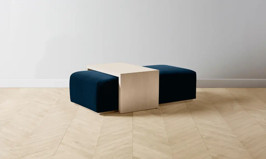 Designed to serve as an ottoman and a coffee table, the Bowery is masterfully upholstered and complete with a removable ash overlay—adding both softness and structure to your space. Handcrafted in North Carolina.