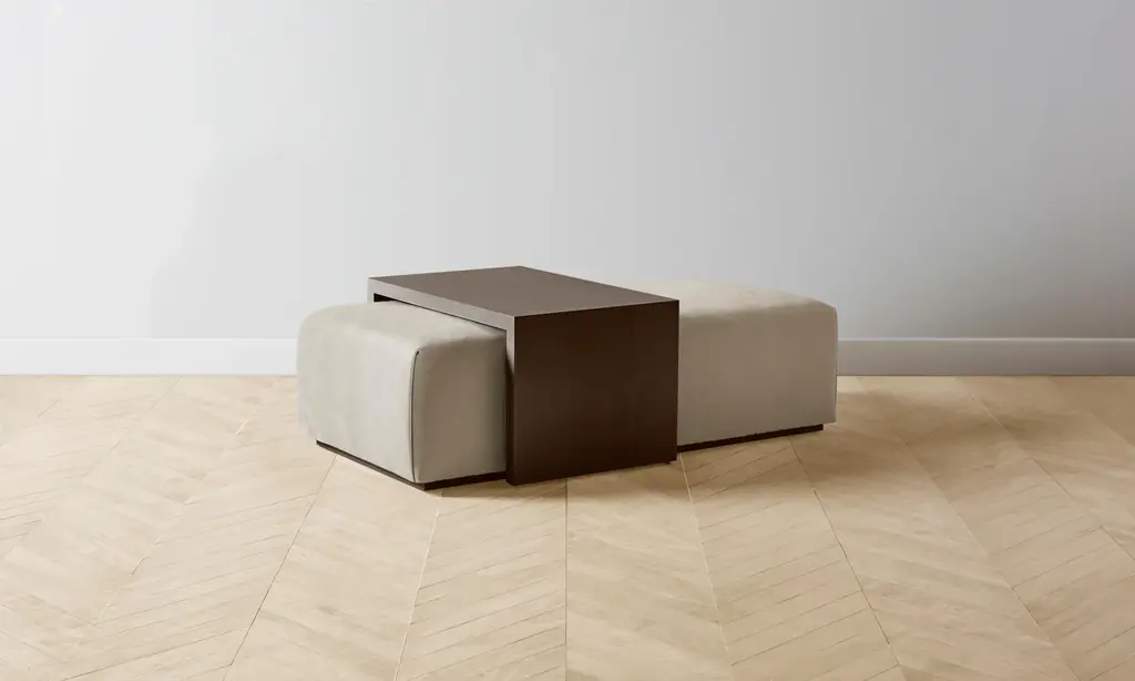 Designed to serve as an ottoman and a coffee table, the Bowery is masterfully upholstered and complete with a removable ash overlay—adding both softness and structure to your space. Handcrafted in North Carolina.