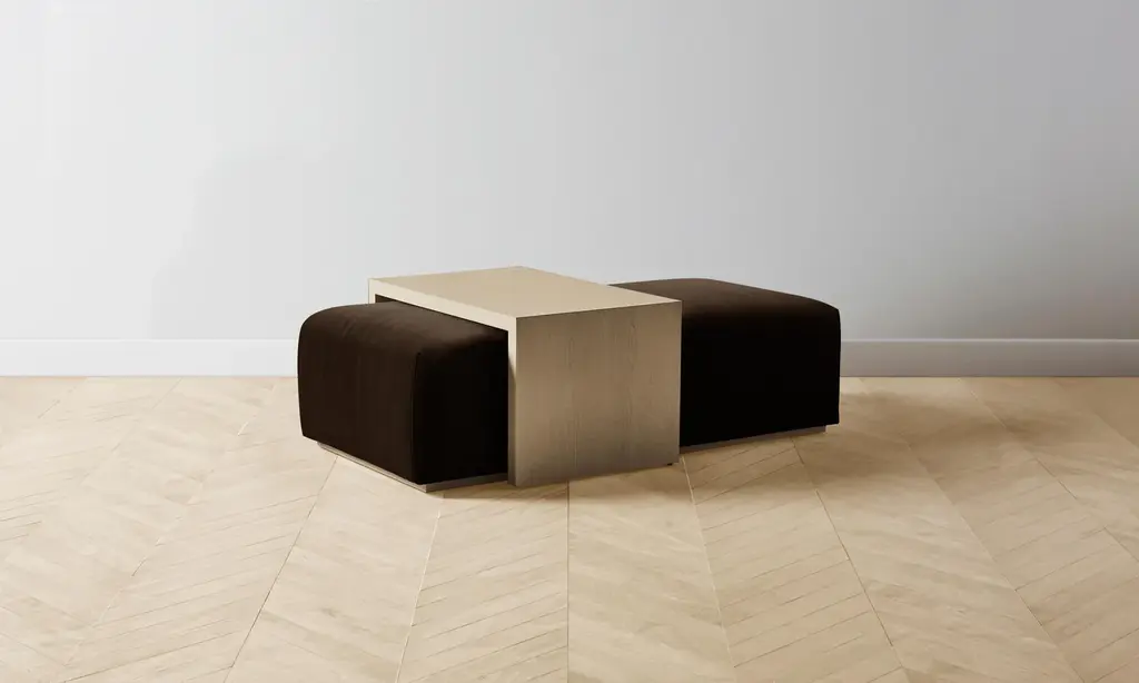 Designed to serve as an ottoman and a coffee table, the Bowery is masterfully upholstered and complete with a removable ash overlay—adding both softness and structure to your space. Handcrafted in North Carolina.