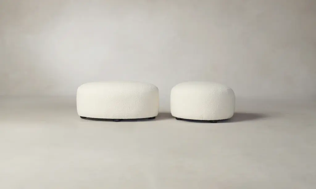 The Chelsea Ottoman's rounded silhouette imbues your space with softness and warmth. The design is tightly upholstered and set on recessed legs for a floating effect. Handcrafted in North Carolina.
