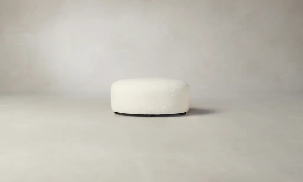 The Chelsea Ottoman's rounded silhouette imbues your space with softness and warmth. The design is tightly upholstered and set on recessed legs for a floating effect. Handcrafted in North Carolina.