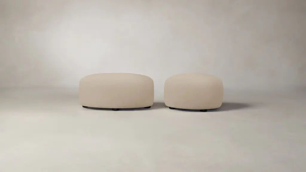 The Chelsea Ottoman's rounded silhouette imbues your space with softness and warmth. The design is tightly upholstered and set on recessed legs for a floating effect. Handcrafted in North Carolina.