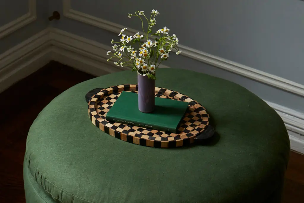 The Evergreen Ottoman In Recycled Velvet - Moss