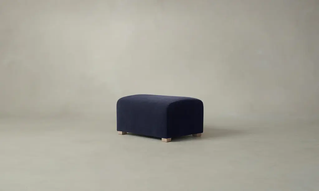 The Lenox Ottoman - Mohair Admiral - 32"w, 25"d, 17"h / Charcoal Maple