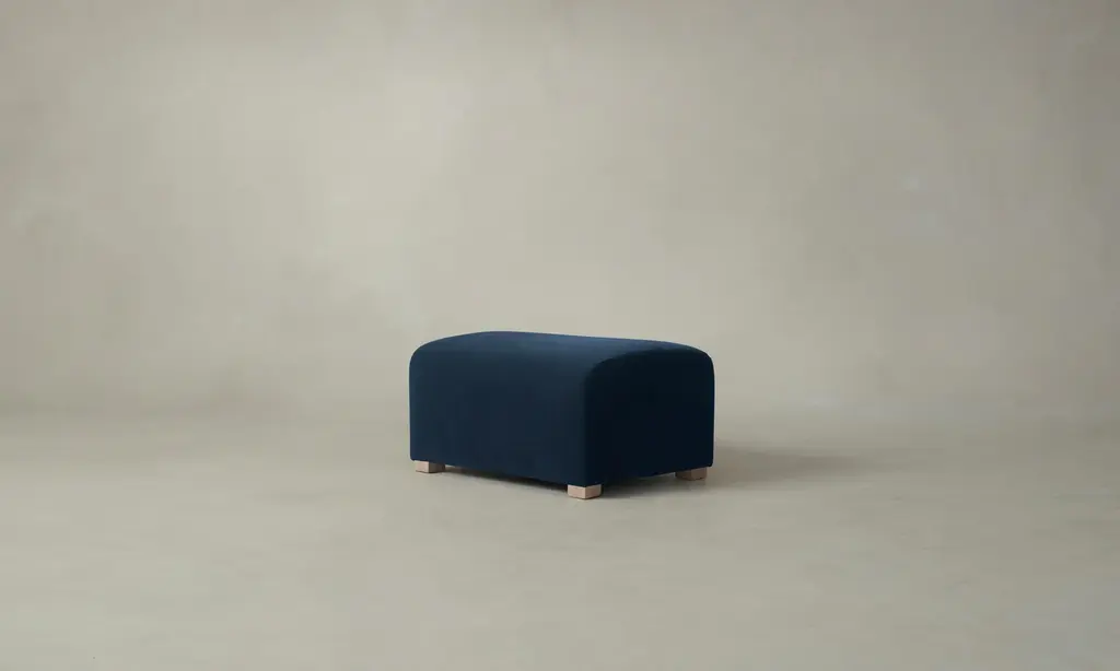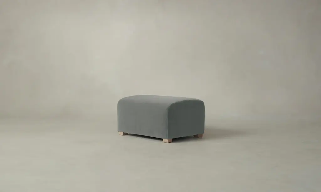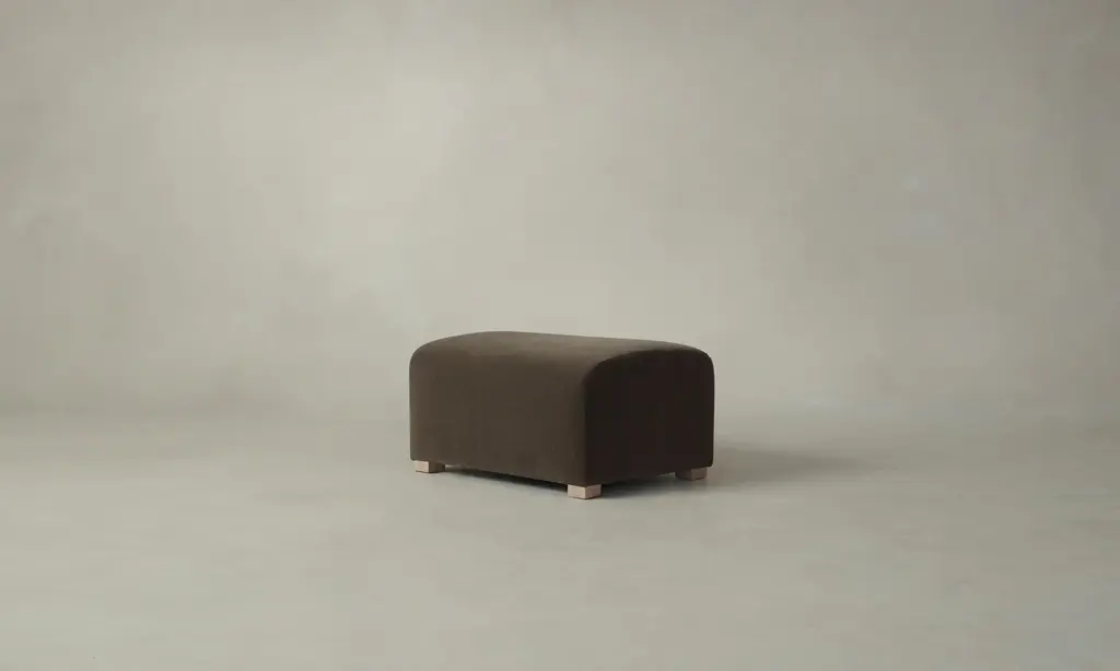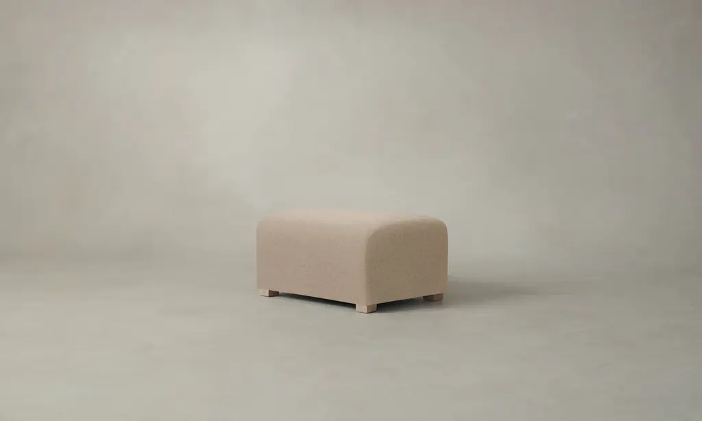 The Lenox Ottoman - Performance Linen Weave Cloud - 32"w, 25"d, 17"h / Pecan Maple