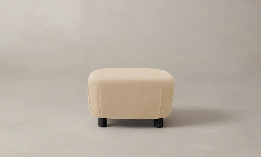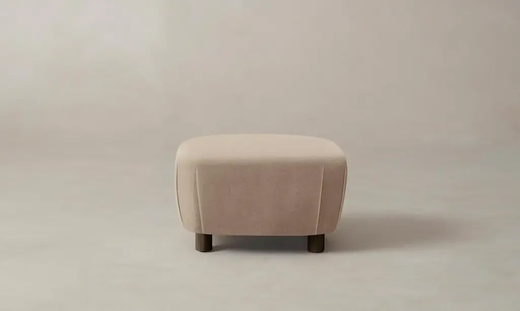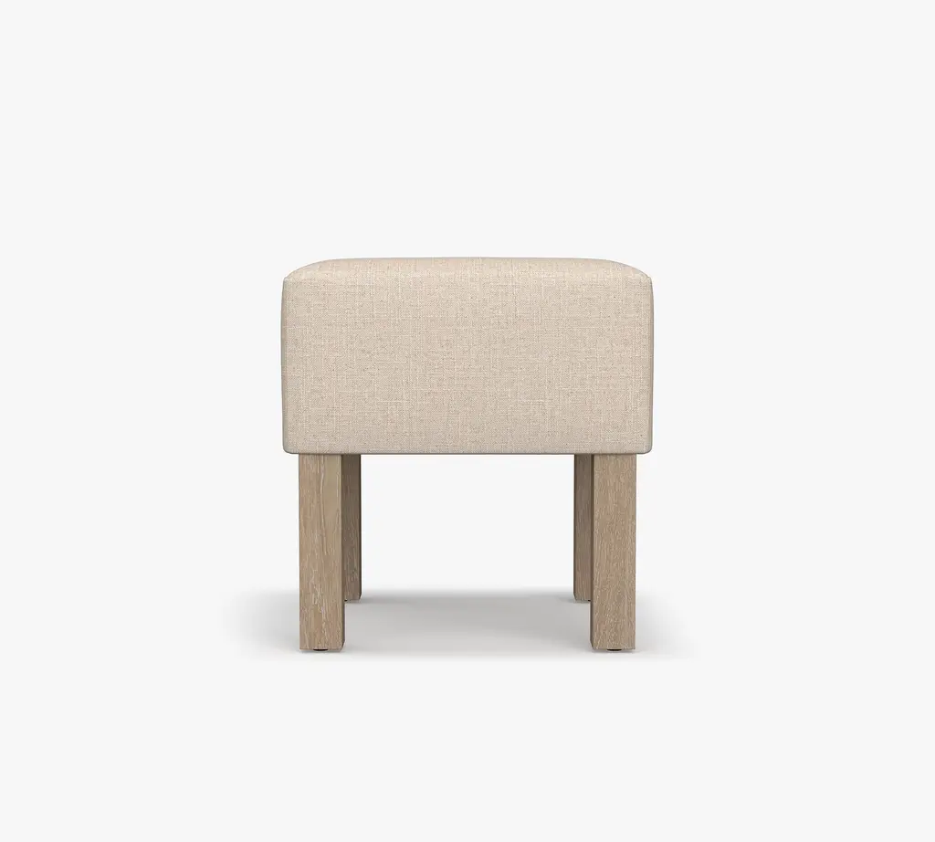 The Lenox Ottoman - Performance Linen Weave Prairie - 32"w, 25"d, 17"h / Pecan Maple