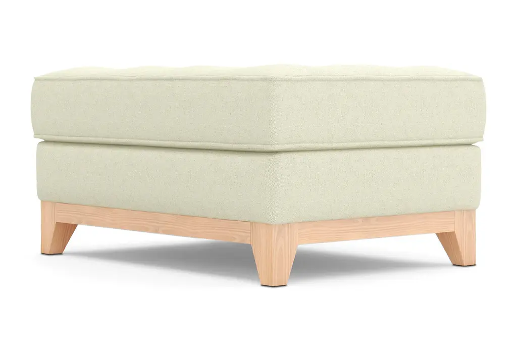 The Perry Ottoman - Deep Pile Mohair Limestone - 24"w, 18"d, 15.5"h / Pecan Maple