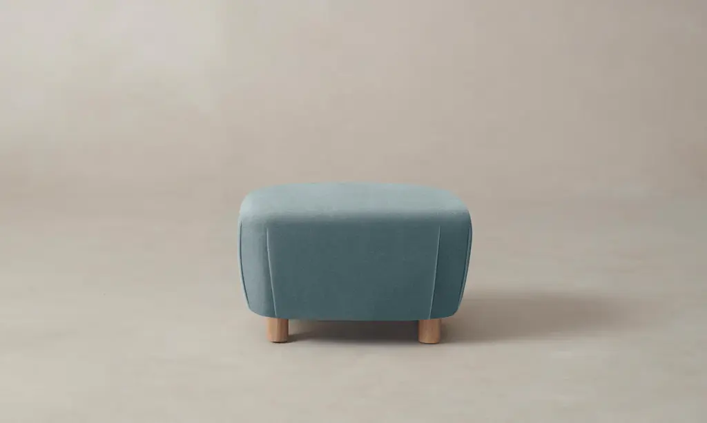The Perry Ottoman - Performance Velvet Sky - 24"w, 18"d, 15.5"h / Driftwood Maple