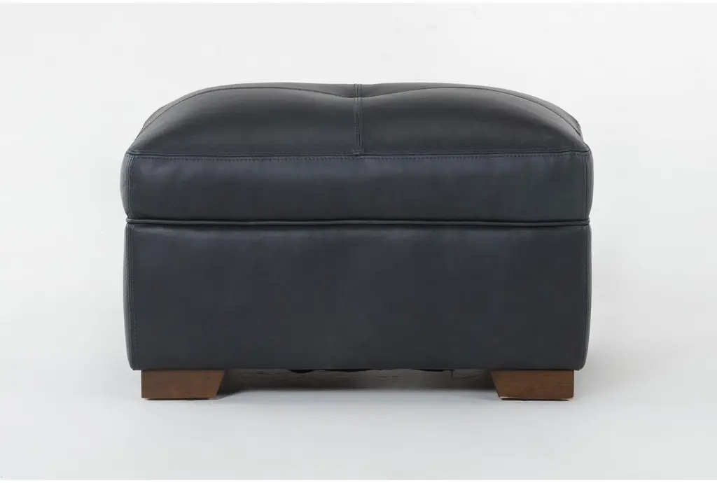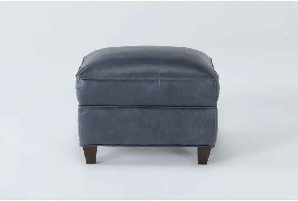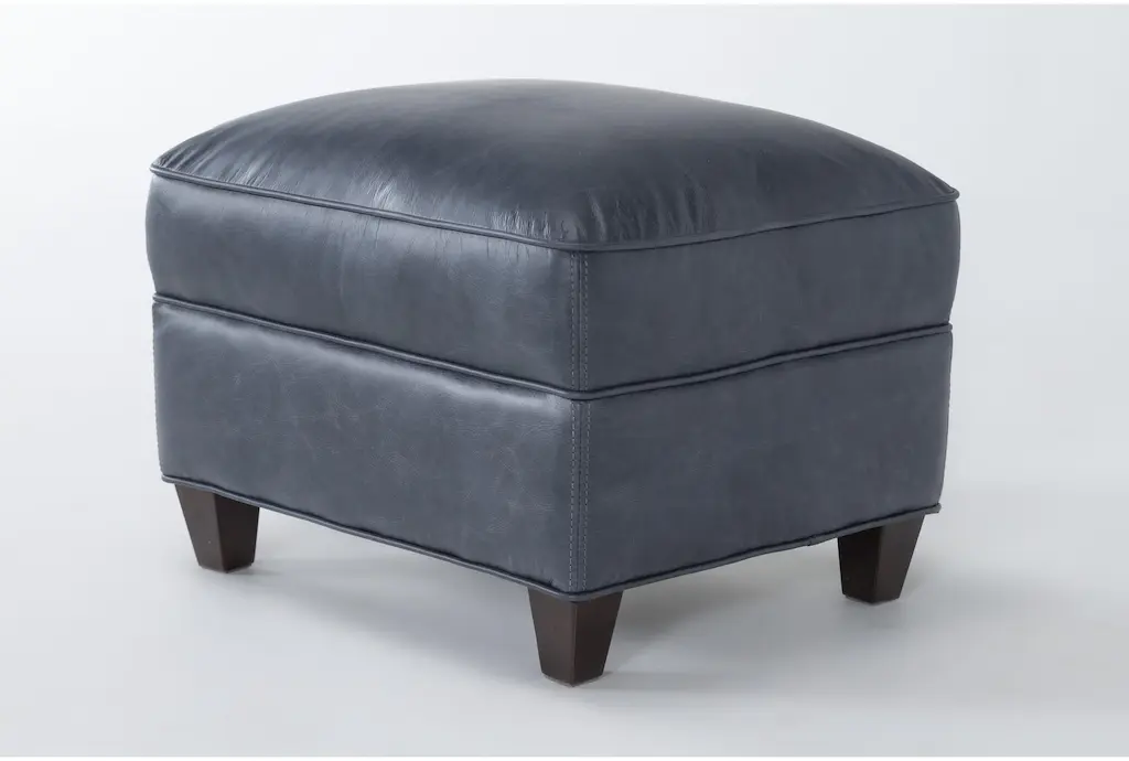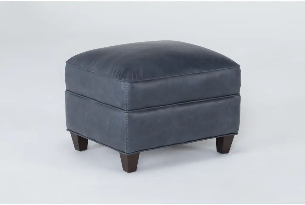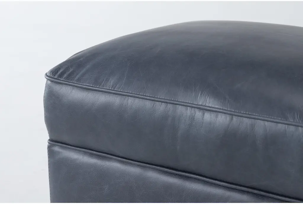 The Theodore Blue Leather Rectangle Ottoman brings rustic elegance to your living room furniture. Its deluxe upholstered rectangular design creates the perfect complement to any seating arrangement while providing comfortable leg support. You'll love the grounded color palette, which favors earth tones.