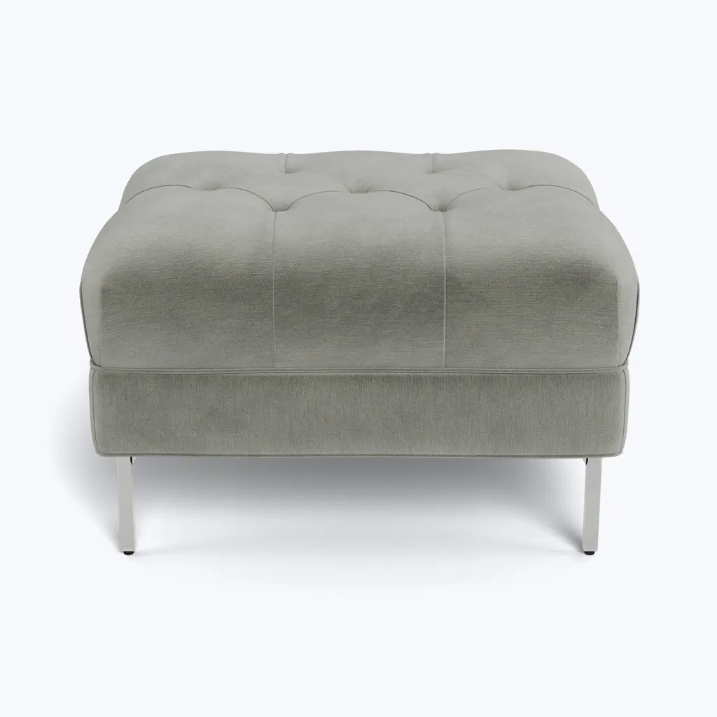 Welcome sophistication into your home with the Tribeca Ottoman, an exclusive offering from abc carpet & home. Featuring clean lines and sleek legs paired with a tuxedo-like aesthetic, this contemporary ottoman exudes a sense of refined luxury that effortlessly complements any decor. The Tribeca Collection goes beyond aesthetics to prioritize your comfort. This collection features tight seat cushions, exuding a formal aesthetic while providing unparalleled comfort atop a balanced suspension base. Crafted with a sustainably sourced Goodwood frame, this ottoman is not only aesthetically pleasing but also eco-conscious, offering peace of mind as you create lasting memories at home. Customize your Tribeca Ottoman with Cobble Hill's wide range of color and fabric combinations, offering more than 80 options to suit your unique style and preferences. Whether it's the Crypton Performance Blend or Kelley Performance Velvet, rest assured that each upholstery option is durable and easy to clean. From bold hues to subtle tones, our wide selection ensures that your ottoman reflects your unique taste and personality. Simply select your dream color and fabric scheme, and your custom ottoman will be shipped to your home in 8-10 weeks. Measuring 27 inches in width, 19 inches in depth, and 15 inches in height, the Tribeca Ottoman offers a compact yet inviting space for relaxation. Additionally, choose between brass and silver leg finishes to perfectly match your interior style. Proudly made in the USA, each piece in the Cobble Hill collection reflects a commitment to quality craftsmanship and ethical manufacturing practices. Maintaining the pristine condition of your ottoman is effortless with simple care instructions. Spot clean with mild detergent and vacuum frequently to keep it looking fresh. For a deeper clean, professional services are recommended. The seat cushions of the Tribeca Ottoman are crafted with a blend of foam, fiber, and feather/down, channeled to ensure even fill distribution. Back cushions feature a fiber and feather blend encased in a channeled down-proof casing. Rest assured, our fill is Responsible Down Standard certified and meets USDA hypoallergenic regulations, free from flame retardant chemicals. Whether used as a footrest, extra seating, or a standalone statement piece, the Tribeca Ottoman from Cobble Hill is the perfect companion to other Tribeca sofas and sectionals, allowing you to create a unique ensemble tailored to your space.