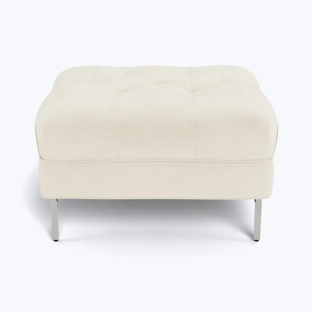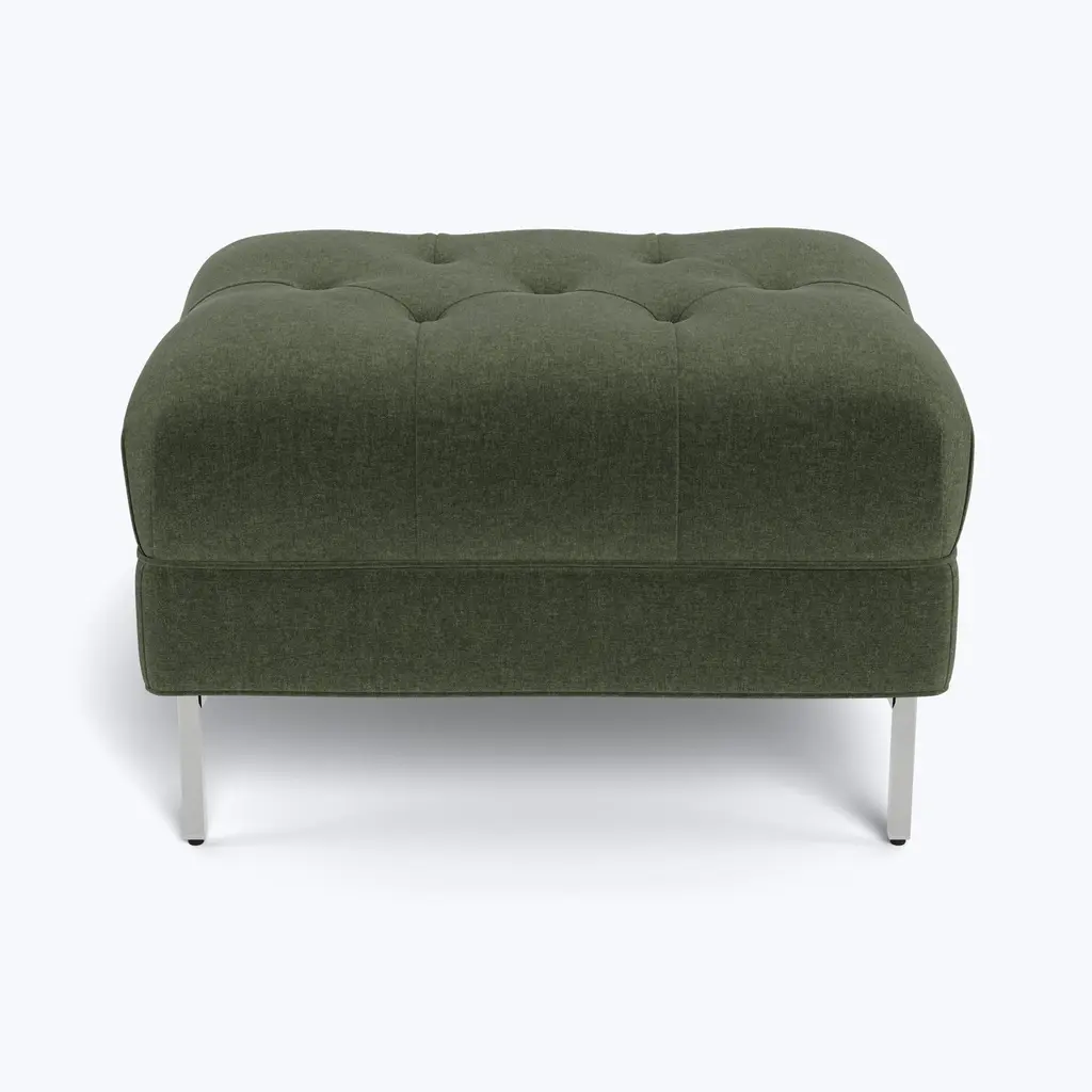 Welcome sophistication into your home with the Tribeca Ottoman, an exclusive offering from abc carpet & home. Featuring clean lines and sleek legs paired with a tuxedo-like aesthetic, this contemporary ottoman exudes a sense of refined luxury that effortlessly complements any decor. The Tribeca Collection goes beyond aesthetics to prioritize your comfort. This collection features tight seat cushions, exuding a formal aesthetic while providing unparalleled comfort atop a balanced suspension base. Crafted with a sustainably sourced Goodwood frame, this ottoman is not only aesthetically pleasing but also eco-conscious, offering peace of mind as you create lasting memories at home. Customize your Tribeca Ottoman with Cobble Hill's wide range of color and fabric combinations, offering more than 80 options to suit your unique style and preferences. Whether it's the Crypton Performance Blend or Kelley Performance Velvet, rest assured that each upholstery option is durable and easy to clean. From bold hues to subtle tones, our wide selection ensures that your ottoman reflects your unique taste and personality. Simply select your dream color and fabric scheme, and your custom ottoman will be shipped to your home in 8-10 weeks. Measuring 27 inches in width, 19 inches in depth, and 15 inches in height, the Tribeca Ottoman offers a compact yet inviting space for relaxation. Additionally, choose between brass and silver leg finishes to perfectly match your interior style. Proudly made in the USA, each piece in the Cobble Hill collection reflects a commitment to quality craftsmanship and ethical manufacturing practices. Maintaining the pristine condition of your ottoman is effortless with simple care instructions. Spot clean with mild detergent and vacuum frequently to keep it looking fresh. For a deeper clean, professional services are recommended. The seat cushions of the Tribeca Ottoman are crafted with a blend of foam, fiber, and feather/down, channeled to ensure even fill distribution. Back cushions feature a fiber and feather blend encased in a channeled down-proof casing. Rest assured, our fill is Responsible Down Standard certified and meets USDA hypoallergenic regulations, free from flame retardant chemicals. Whether used as a footrest, extra seating, or a standalone statement piece, the Tribeca Ottoman from Cobble Hill is the perfect companion to other Tribeca sofas and sectionals, allowing you to create a unique ensemble tailored to your space.