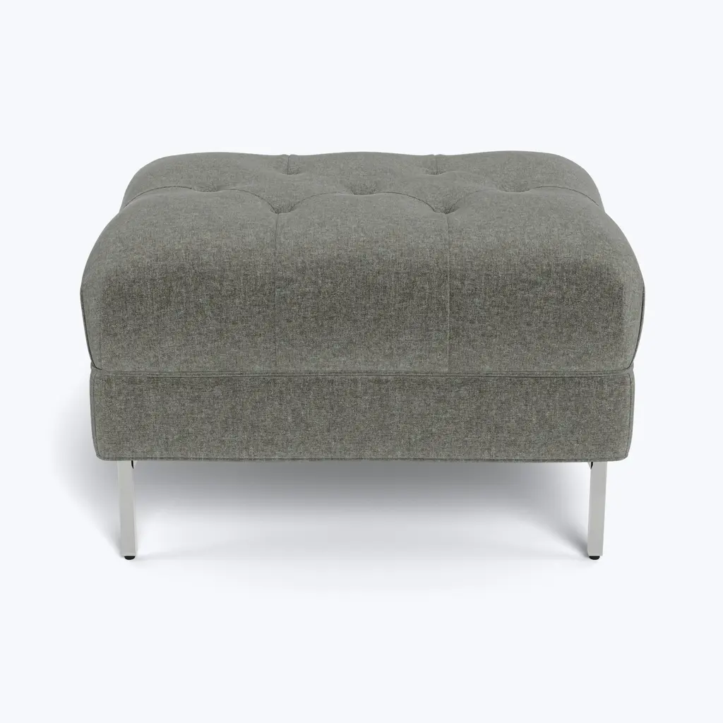 Welcome sophistication into your home with the Tribeca Ottoman, an exclusive offering from abc carpet & home. Featuring clean lines and sleek legs paired with a tuxedo-like aesthetic, this contemporary ottoman exudes a sense of refined luxury that effortlessly complements any decor. The Tribeca Collection goes beyond aesthetics to prioritize your comfort. This collection features tight seat cushions, exuding a formal aesthetic while providing unparalleled comfort atop a balanced suspension base. Crafted with a sustainably sourced Goodwood frame, this ottoman is not only aesthetically pleasing but also eco-conscious, offering peace of mind as you create lasting memories at home. Customize your Tribeca Ottoman with Cobble Hill's wide range of color and fabric combinations, offering more than 80 options to suit your unique style and preferences. Whether it's the Crypton Performance Blend or Kelley Performance Velvet, rest assured that each upholstery option is durable and easy to clean. From bold hues to subtle tones, our wide selection ensures that your ottoman reflects your unique taste and personality. Simply select your dream color and fabric scheme, and your custom ottoman will be shipped to your home in 8-10 weeks. Measuring 27 inches in width, 19 inches in depth, and 15 inches in height, the Tribeca Ottoman offers a compact yet inviting space for relaxation. Additionally, choose between brass and silver leg finishes to perfectly match your interior style. Proudly made in the USA, each piece in the Cobble Hill collection reflects a commitment to quality craftsmanship and ethical manufacturing practices. Maintaining the pristine condition of your ottoman is effortless with simple care instructions. Spot clean with mild detergent and vacuum frequently to keep it looking fresh. For a deeper clean, professional services are recommended. The seat cushions of the Tribeca Ottoman are crafted with a blend of foam, fiber, and feather/down, channeled to ensure even fill distribution. Back cushions feature a fiber and feather blend encased in a channeled down-proof casing. Rest assured, our fill is Responsible Down Standard certified and meets USDA hypoallergenic regulations, free from flame retardant chemicals. Whether used as a footrest, extra seating, or a standalone statement piece, the Tribeca Ottoman from Cobble Hill is the perfect companion to other Tribeca sofas and sectionals, allowing you to create a unique ensemble tailored to your space.