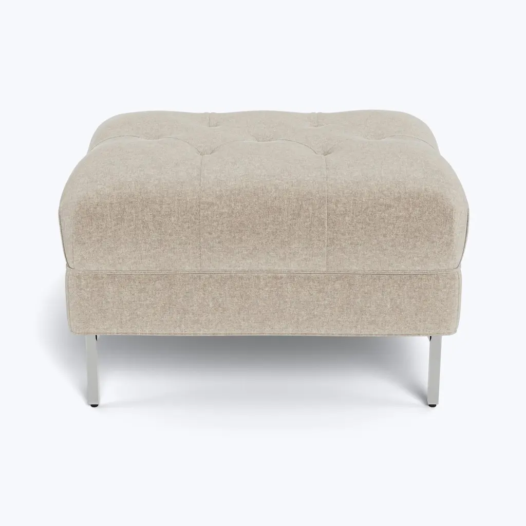 Welcome sophistication into your home with the Tribeca Ottoman, an exclusive offering from abc carpet & home. Featuring clean lines and sleek legs paired with a tuxedo-like aesthetic, this contemporary ottoman exudes a sense of refined luxury that effortlessly complements any decor. The Tribeca Collection goes beyond aesthetics to prioritize your comfort. This collection features tight seat cushions, exuding a formal aesthetic while providing unparalleled comfort atop a balanced suspension base. Crafted with a sustainably sourced Goodwood frame, this ottoman is not only aesthetically pleasing but also eco-conscious, offering peace of mind as you create lasting memories at home. Customize your Tribeca Ottoman with Cobble Hill's wide range of color and fabric combinations, offering more than 80 options to suit your unique style and preferences. Whether it's the Crypton Performance Blend or Kelley Performance Velvet, rest assured that each upholstery option is durable and easy to clean. From bold hues to subtle tones, our wide selection ensures that your ottoman reflects your unique taste and personality. Simply select your dream color and fabric scheme, and your custom ottoman will be shipped to your home in 8-10 weeks. Measuring 27 inches in width, 19 inches in depth, and 15 inches in height, the Tribeca Ottoman offers a compact yet inviting space for relaxation. Additionally, choose between brass and silver leg finishes to perfectly match your interior style. Proudly made in the USA, each piece in the Cobble Hill collection reflects a commitment to quality craftsmanship and ethical manufacturing practices. Maintaining the pristine condition of your ottoman is effortless with simple care instructions. Spot clean with mild detergent and vacuum frequently to keep it looking fresh. For a deeper clean, professional services are recommended. The seat cushions of the Tribeca Ottoman are crafted with a blend of foam, fiber, and feather/down, channeled to ensure even fill distribution. Back cushions feature a fiber and feather blend encased in a channeled down-proof casing. Rest assured, our fill is Responsible Down Standard certified and meets USDA hypoallergenic regulations, free from flame retardant chemicals. Whether used as a footrest, extra seating, or a standalone statement piece, the Tribeca Ottoman from Cobble Hill is the perfect companion to other Tribeca sofas and sectionals, allowing you to create a unique ensemble tailored to your space.