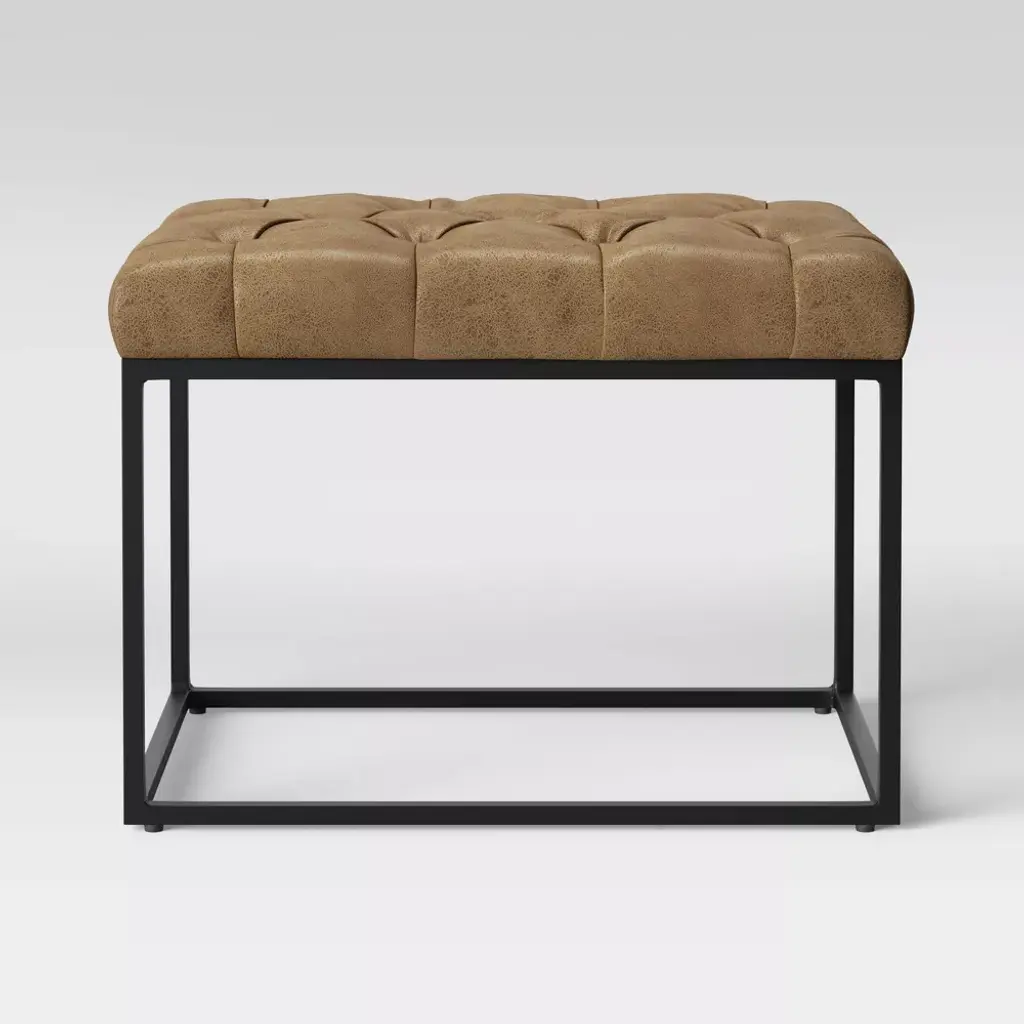 Trubeck Tufted Metal Base Ottoman Faux Leather - Threshold™