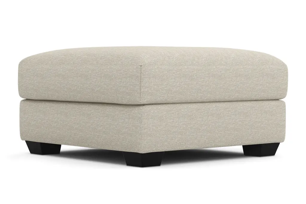 While the Tuxedo Ottoman is designed to perfectly match our Tuxedo Collection, pair it with your existing seating for a more eclectic vibe. Tuxedo can be upholstered in a wide variety of soft, textured poly-blend fabrics, in a handful of sizes and with your choice of three wooden leg finishes. Made in the USA!