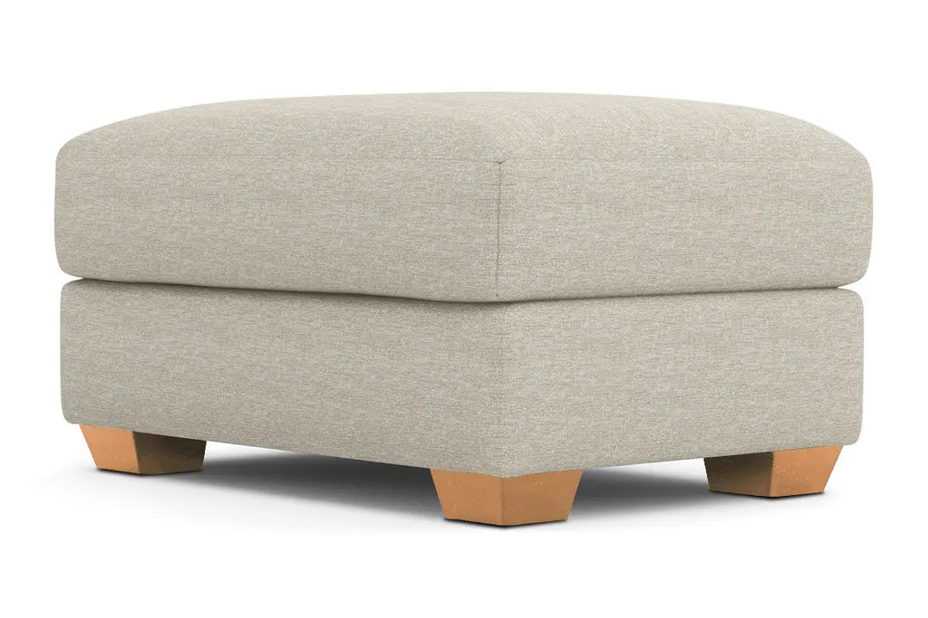 While the Tuxedo Ottoman is designed to perfectly match our Tuxedo Collection, pair it with your existing seating for a more eclectic vibe. Tuxedo can be upholstered in a wide variety of soft, textured poly-blend fabrics, in a handful of sizes and with your choice of three wooden leg finishes. Made in the USA!