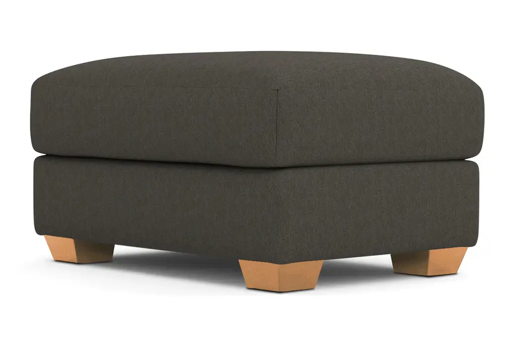 While the Tuxedo Ottoman is designed to perfectly match our Tuxedo Collection, pair it with your existing seating for a more eclectic vibe. Tuxedo can be upholstered in a wide variety of soft, textured poly-blend fabrics, in a handful of sizes and with your choice of three wooden leg finishes. Made in the USA!