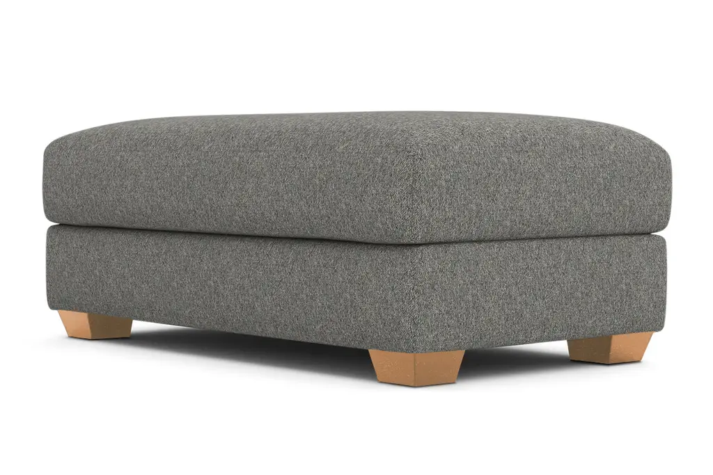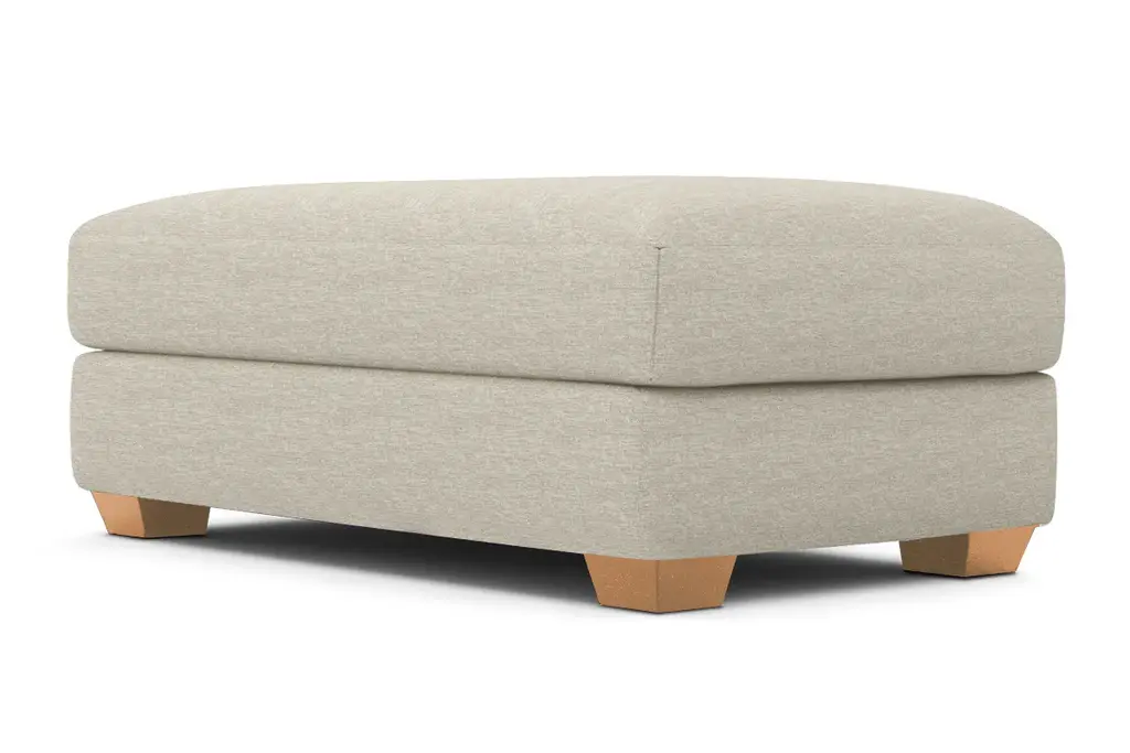 While the Tuxedo Ottoman is designed to perfectly match our Tuxedo Collection, pair it with your existing seating for a more eclectic vibe. Tuxedo can be upholstered in a wide variety of soft, textured poly-blend fabrics, in a handful of sizes and with your choice of three wooden leg finishes. Made in the USA!
