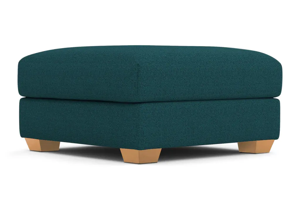 While the Tuxedo Ottoman is designed to perfectly match our Tuxedo Collection, pair it with your existing seating for a more eclectic vibe. Tuxedo can be upholstered in a wide variety of soft, textured poly-blend fabrics, in a handful of sizes and with your choice of three wooden leg finishes. Made in the USA!