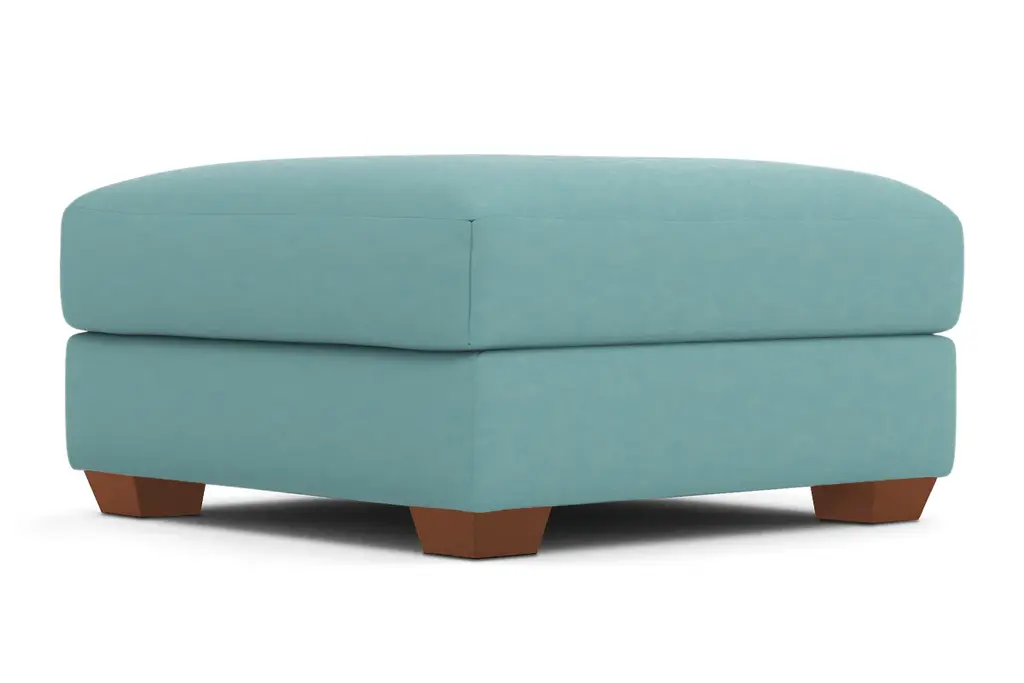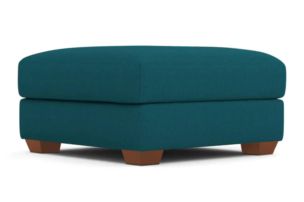 While the Tuxedo Ottoman is designed to perfectly match our Tuxedo Collection, pair it with your existing seating for a more eclectic vibe. Tuxedo can be upholstered in a wide variety of soft, textured poly-blend fabrics, in a handful of sizes and with your choice of three wooden leg finishes. Made in the USA!