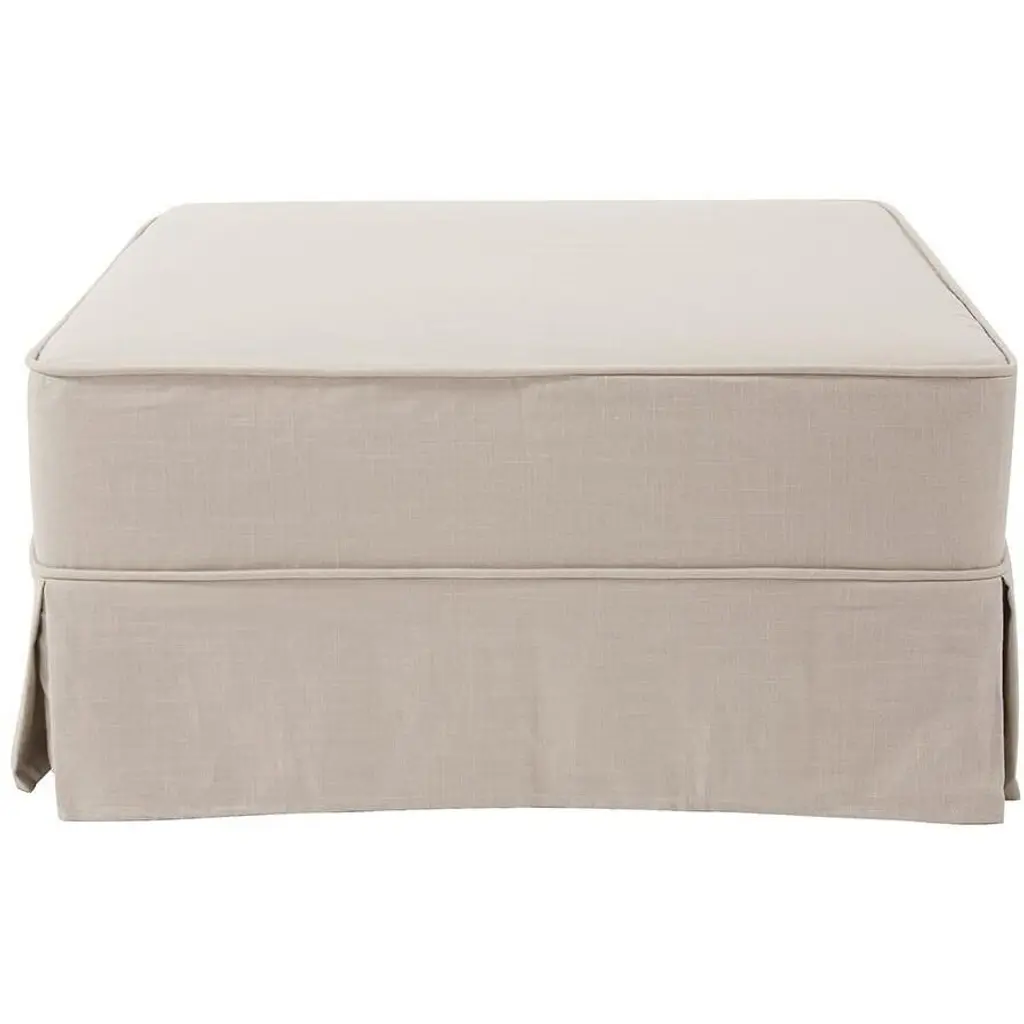 Our Linen Slub 36 Square features a sleek and sophisticated linen fabric with soft hand and gorgeous natural linen color. This particular cover features a pleated skirt, perfect for a shabby chic look. The simple design of the Linen Slub 36 Squares makes them great to use as side tables, ottomans, alternate seating and more. Additional covers are available for sale so you can update your 36 Square without the expense of purchasing a new ottoman! Constructed by our expert craftsmen, our 36 Squares are made with a sturdy base and high-density foam. ***Please note that due to the organic tendencies of natural linen fabric, the color may vary from lot to lot.*** This item is for the complete 36in Ottoman. It includes the cover and base.