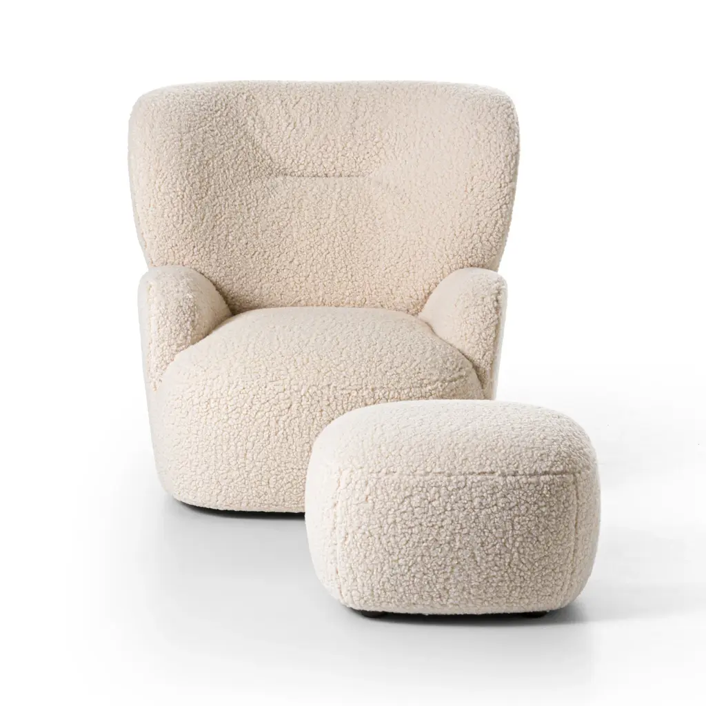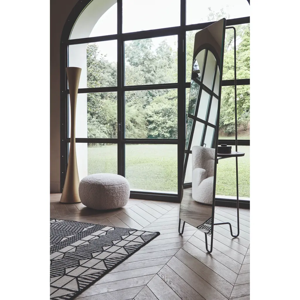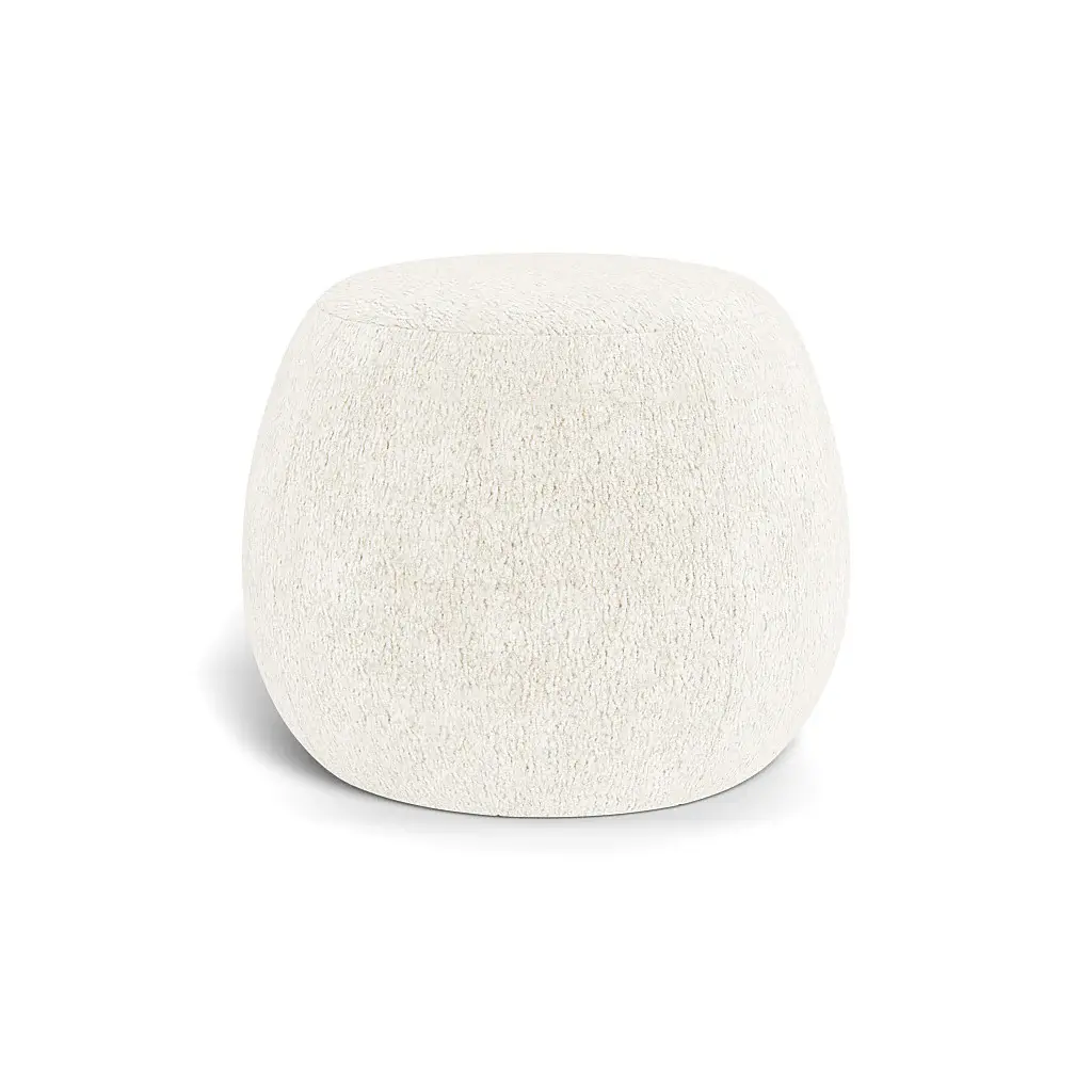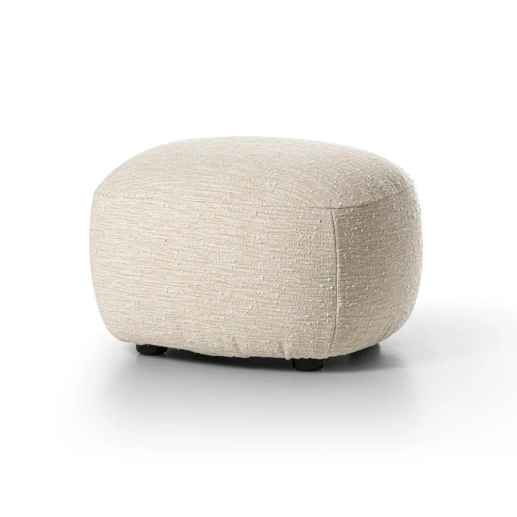 The Loll Upholstered Modern Ottoman from Gervasoni, a uniquely crafted pouf designed to bring comfort and style to any space. It features a solid wood structure and elastic belts with high rubber content, ensuring durability and support. Its rounded shape and high-density foam seat provide a plush, comfortable lounging experience. Its removable cover adds to its luxury and convenience.