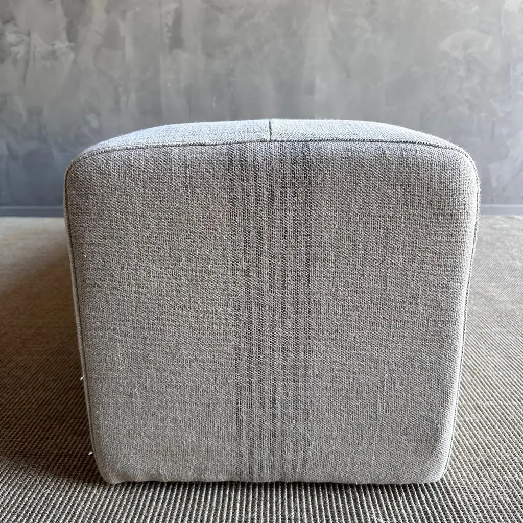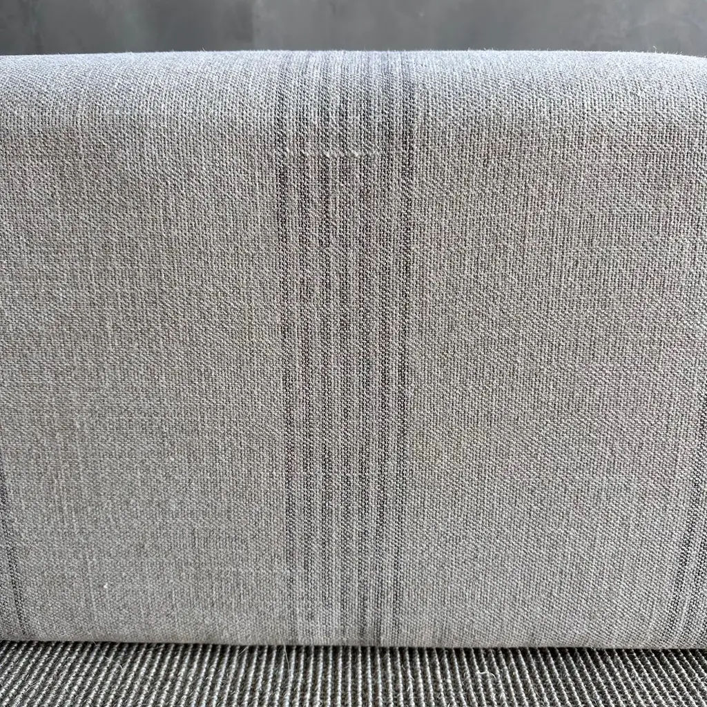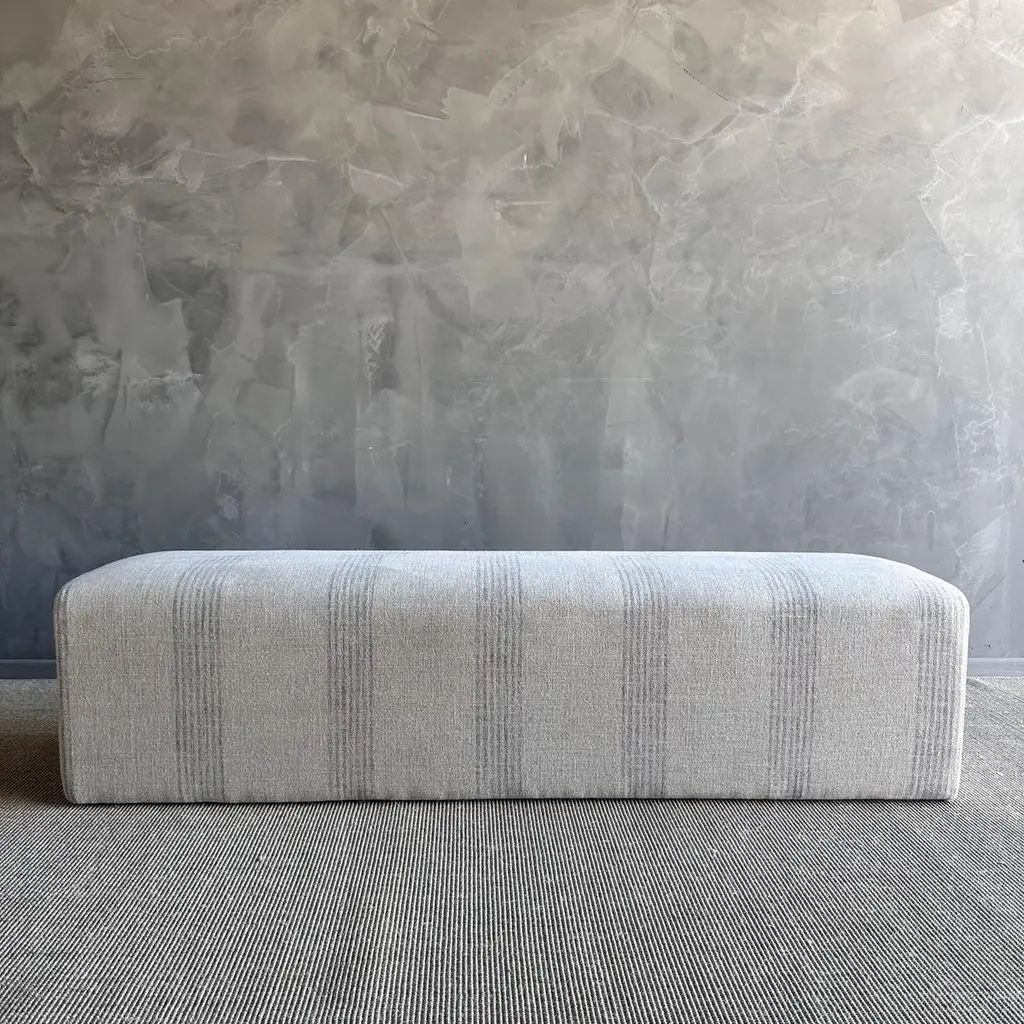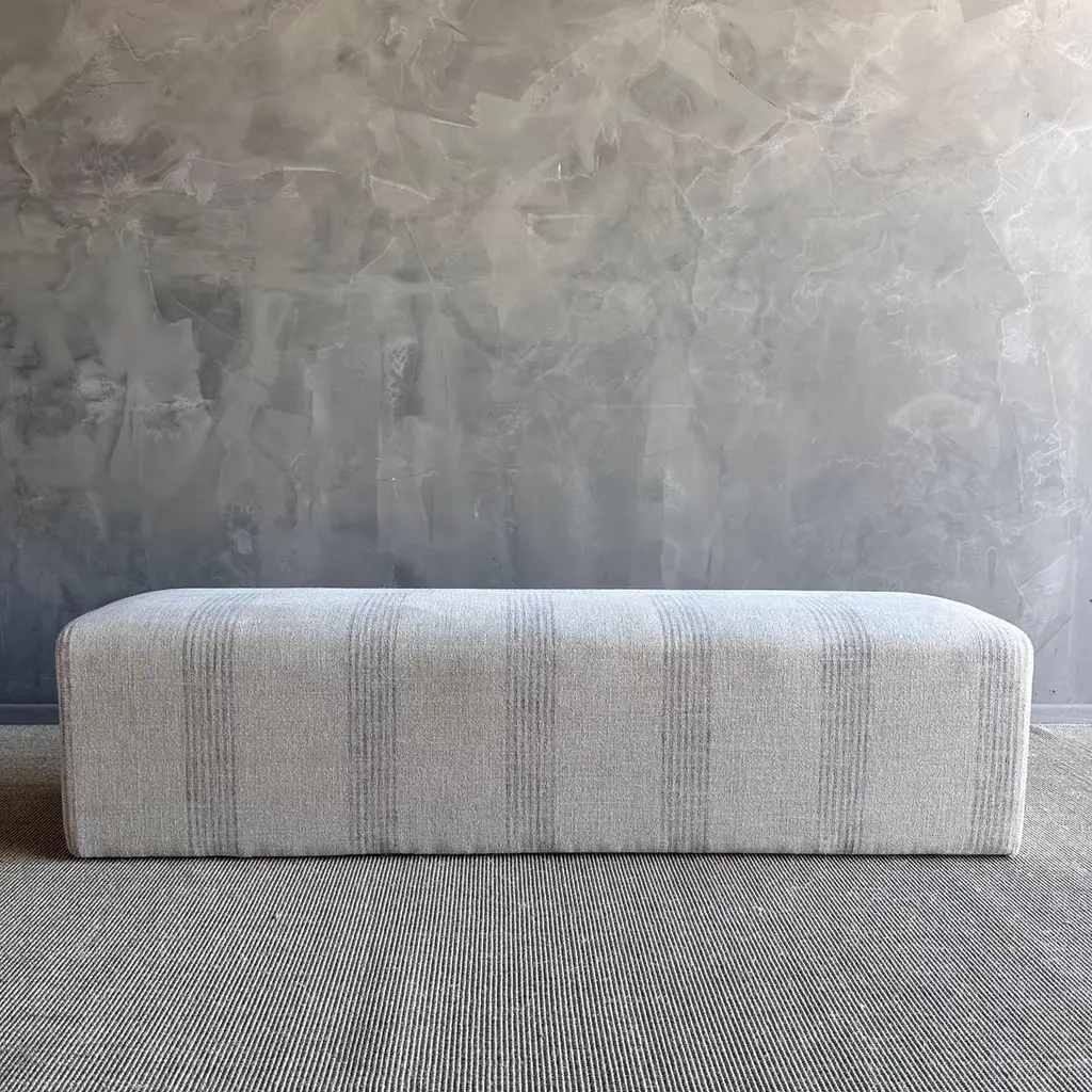 Upholstered Ottoman Bench In Stone Washed Linen With Faded Stripe