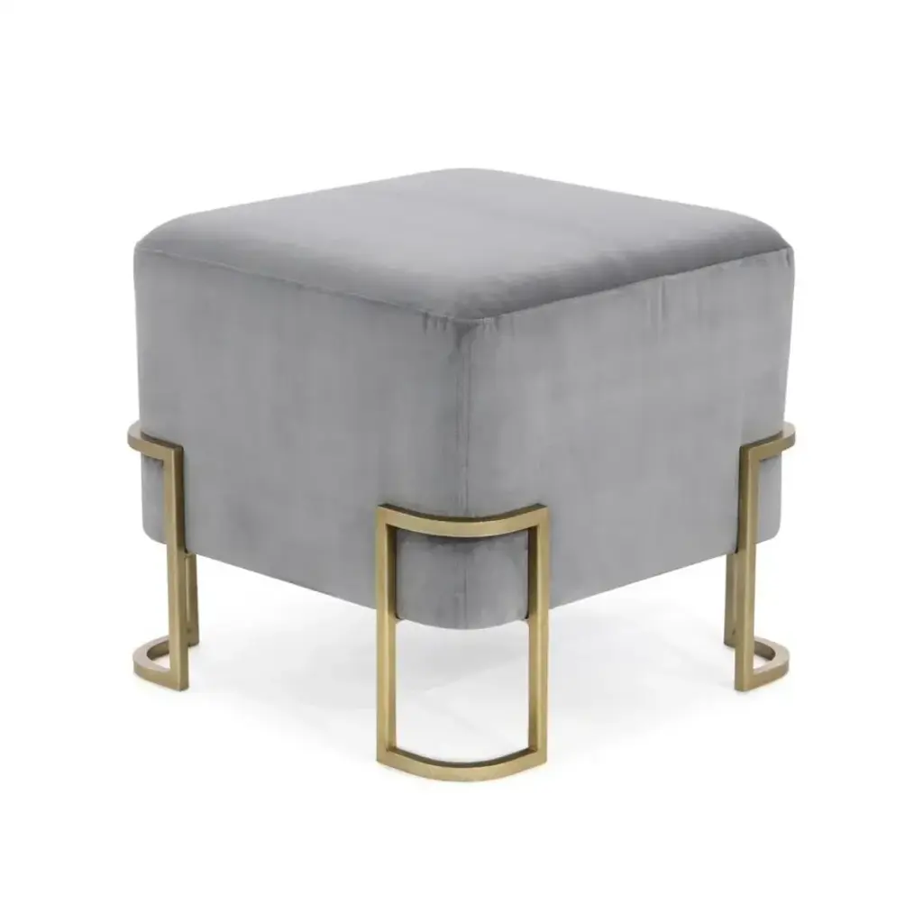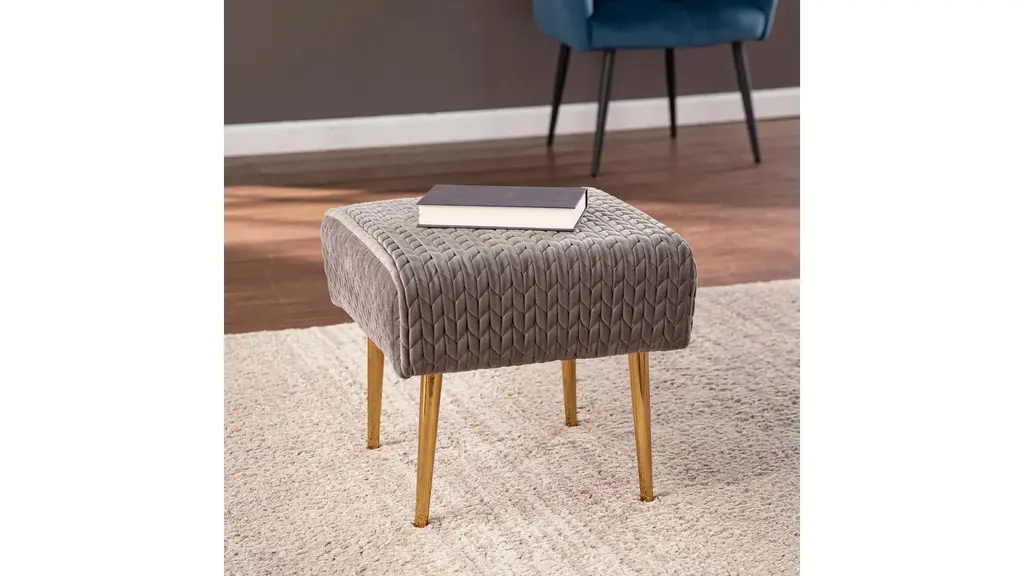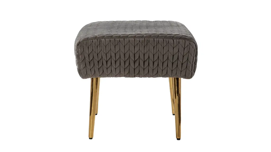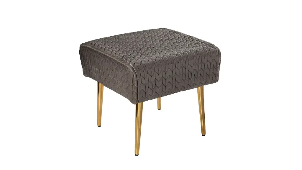 Rest your feet or take a seat on the versatile Uppingham Ottoman. Gray braided fabric offers a unique texture, while gold telescoping legs craft a modern feel. Place under your vanity while preparing for your day or slide into your living room for extra seating while entertaining guests. Add a luxurious accent piece to your living space with this modern velvet ottoman.