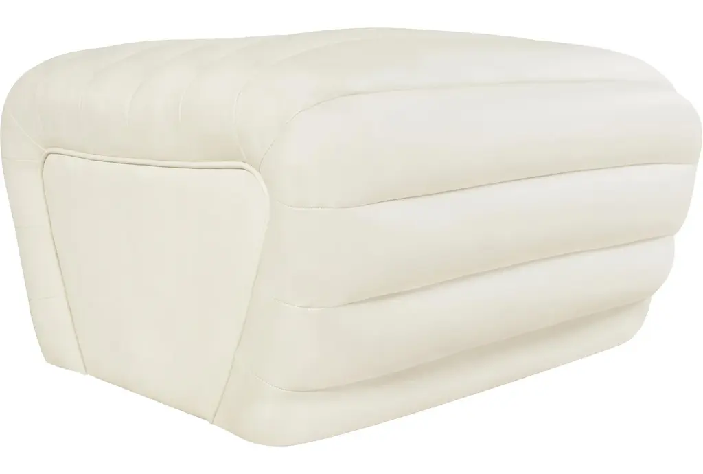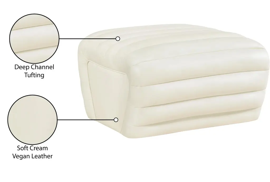 Vega Cream Faux Leather Upholstered Ottoman | Rectangle
