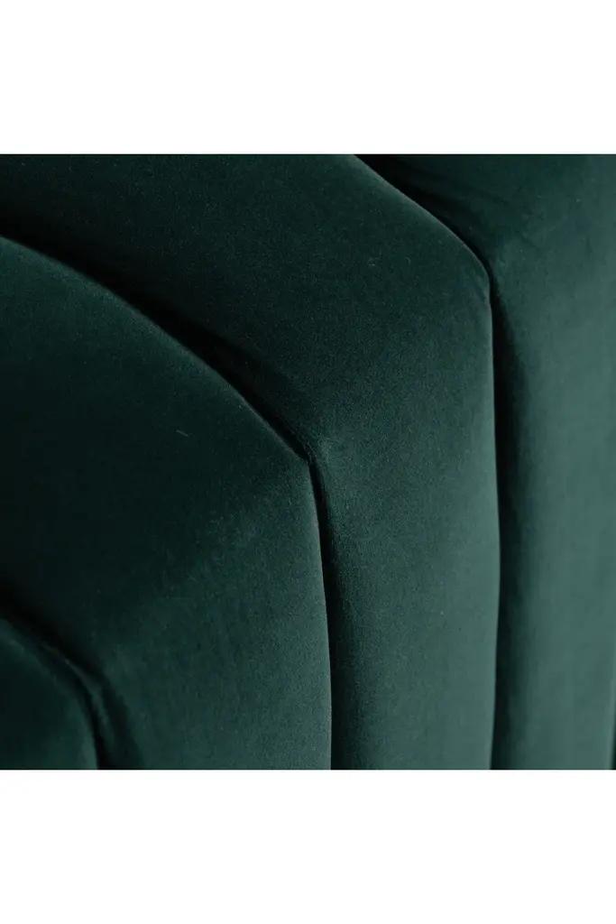 Indulge in luxury and sophistication with the Marsa bed footboard from Vical Home. This elegant piece features a chic art deco design, with a durable fir wood frame and soft velvet upholstery in your choice of ochre or green. Channel-tufted detailing adds a touch of opulence to any bedroom.
