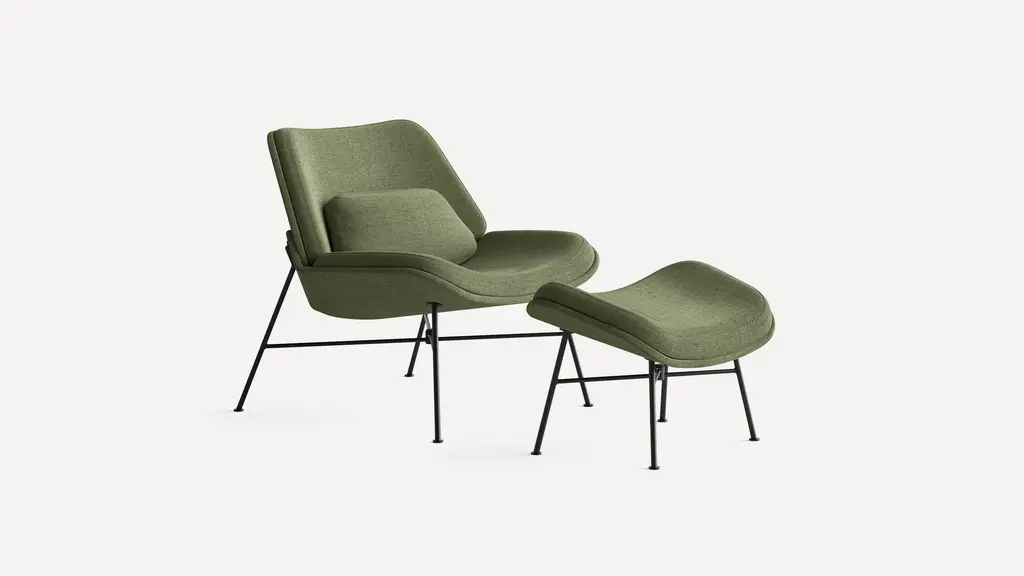 Vesper is a visually striking, statement design that still meets our high standard for functionality. It builds upon a long legacy of molded plywood lounge chairs, and takes a step beyond homage: the custom-pressed shell was engineered to offer a comfortably reclined seat, but also to nest for efficient shipping and easy setup — just the sort of thoughtful touch you’ve come to expect from Burrow.