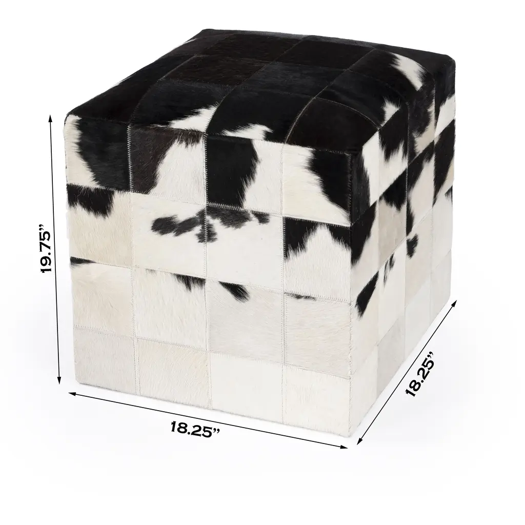 Butler Specialty Company Victorian Hair on Hide Cube Ottoman, Black and White
