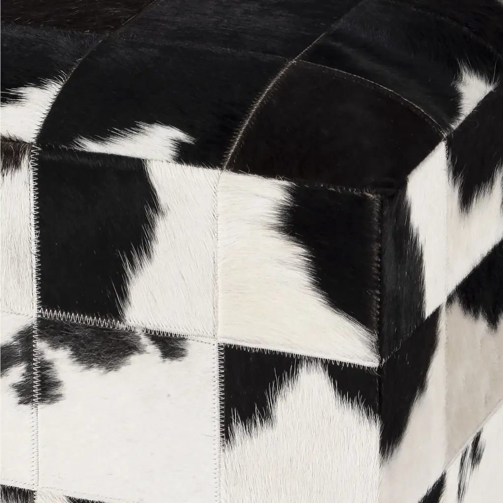Victorian Hair On Hide Cube Ottoman In Black And White