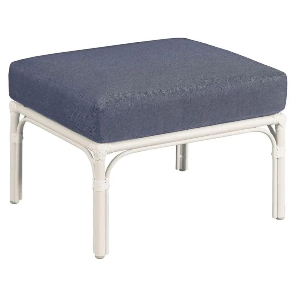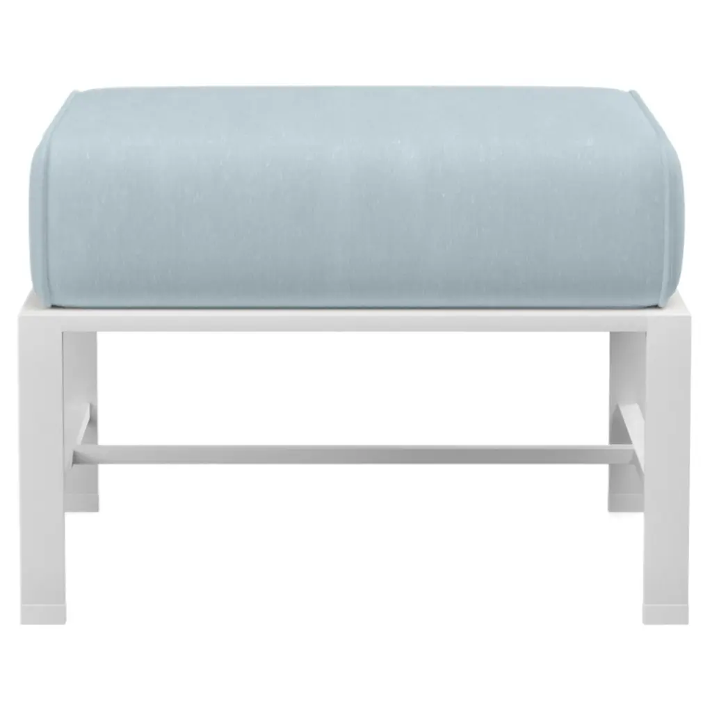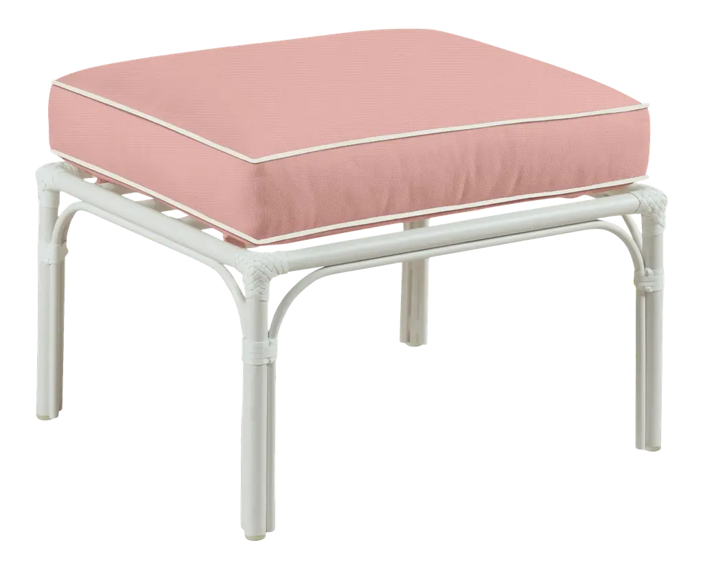 Feminine in its sinuous and graceful lines inspired by vines' intricate shoots, this ottoman's sturdy stainless steel frame is here powder-varnished in a delicate shade of lilac (RAL 4009). A generously padded cushion wrapped in beige fabric makes the seat exceptionally comfortable and stable even when used as an occasional low table for laying a tray for a casual outdoor aperitif.