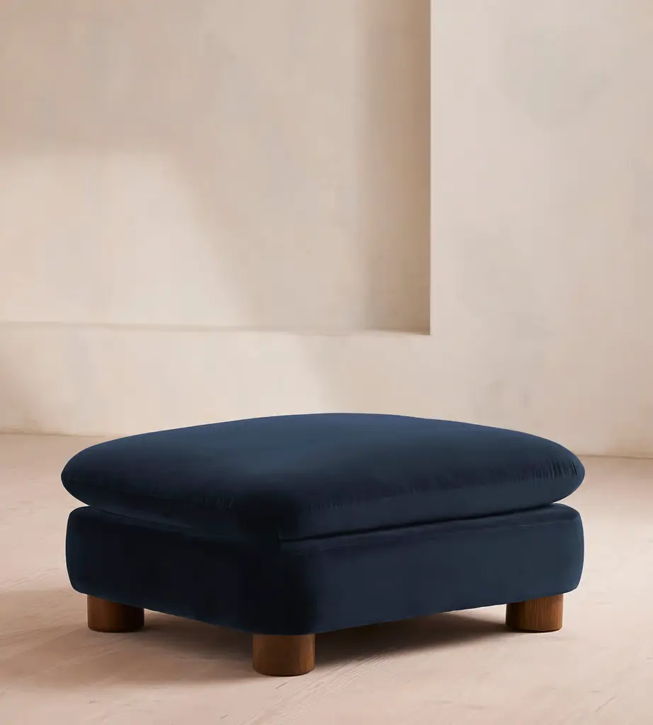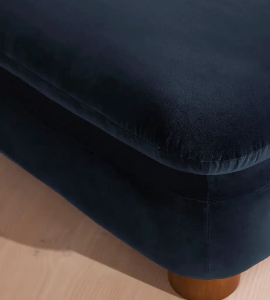 The eighth floor at White City House forms the inspiration for the Vivienne ottoman. Upholstered in velvet, it's finished with cylindrical legs. Coordinate with other pieces in the Vivienne collection for the full effect, or stand it alone as an alternative seating spot.