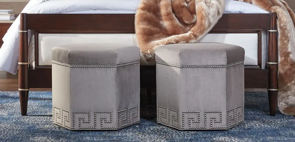 Scaled to slip under a console table and pop out when you need extra seating, our Viviette hexagon ottoman mixes modern geometry with classic sophistication. Keep the look sleek and simple, or add nailheads for a glamorous statement. Customizable in your choice of fabric; twice as good in pairs.
