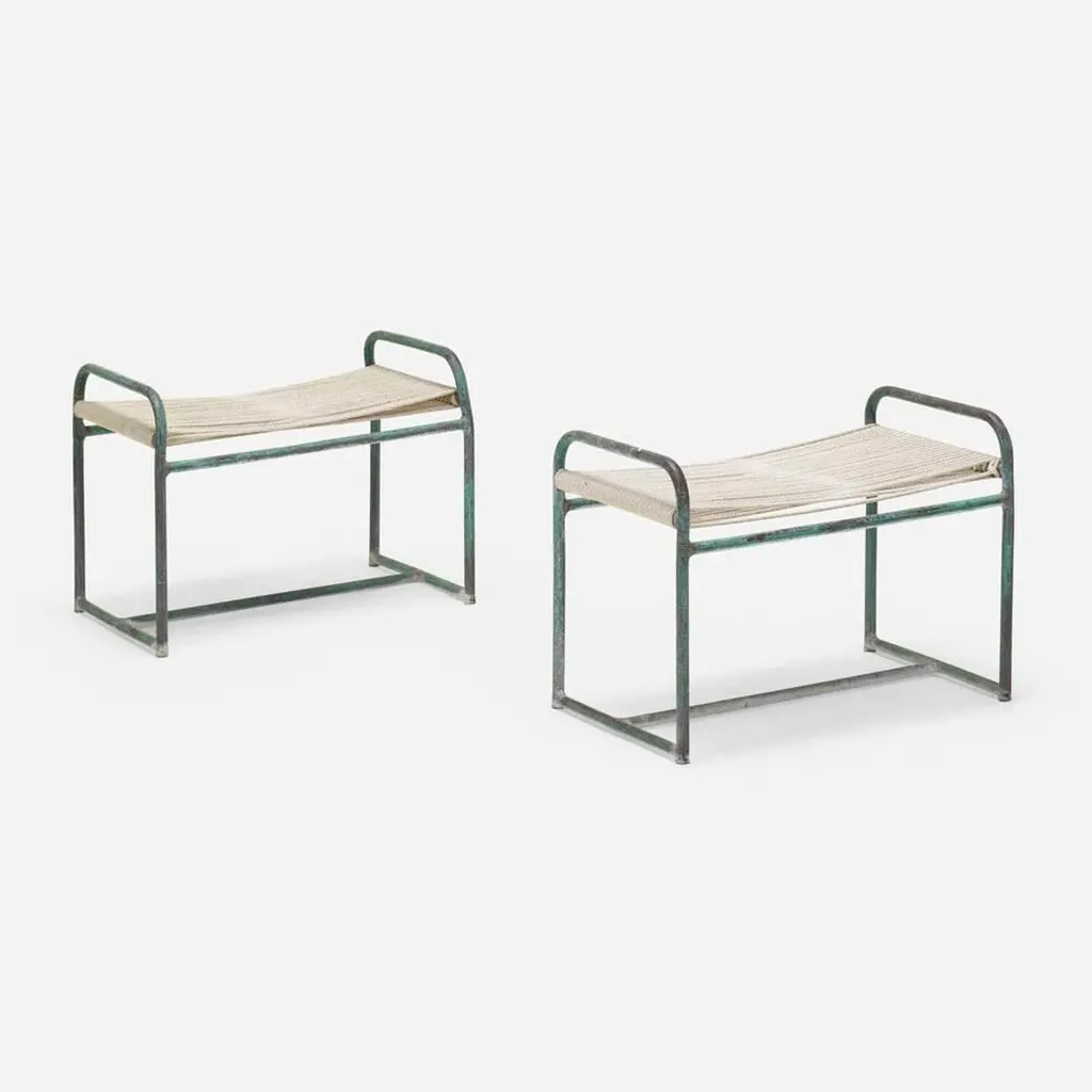 Walter LambOttomans model C-5706, pairBrown JordanUSA, c. 1952bronze, cotton cord17½ h × 23½ w × 15 d in (44 × 60 × 38 cm)Literature: Walter Lamb, manufacturer's catalog, 1954, unpaginated