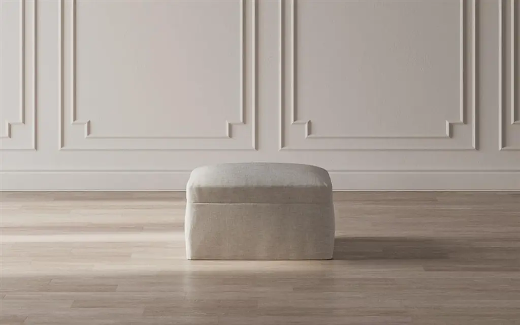 With modern lines and relaxed draping, the Weybridge slipcovered ottoman is effortlessly stylish and livable. Soft and supportive cushioning offers plush, cloud-like comfort, with a foam core surrounded by a blend of fiber, down, and feather fill. Pair this versatile piece with the Weybridge slipcovered chair to create a cozy space for quiet moments at home. Choose from washable slipcover fabrics in a variety of serene hues.