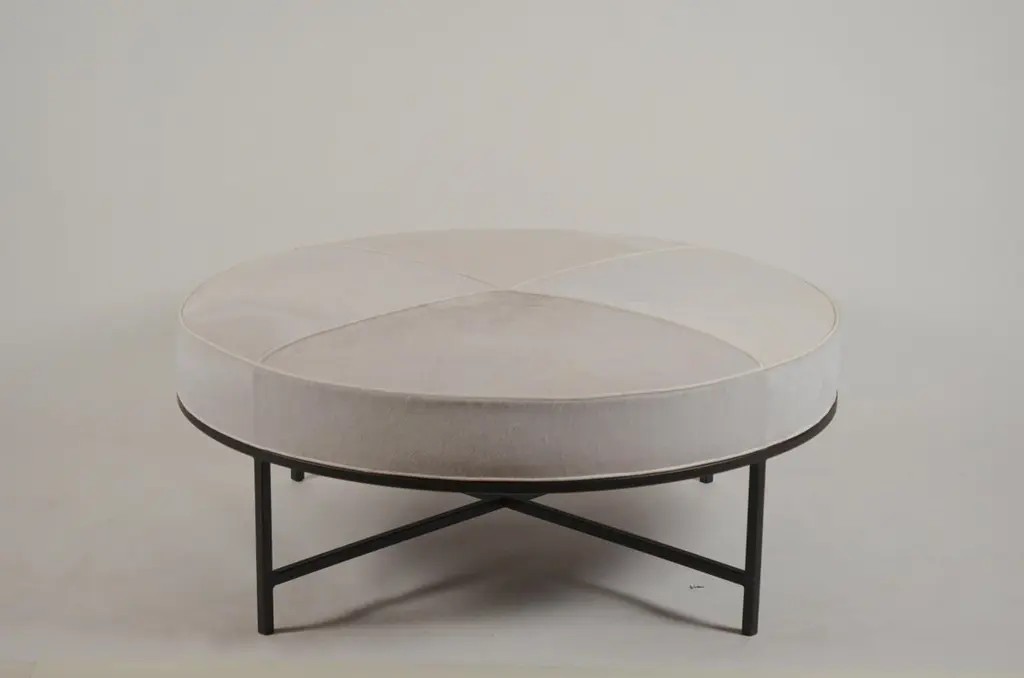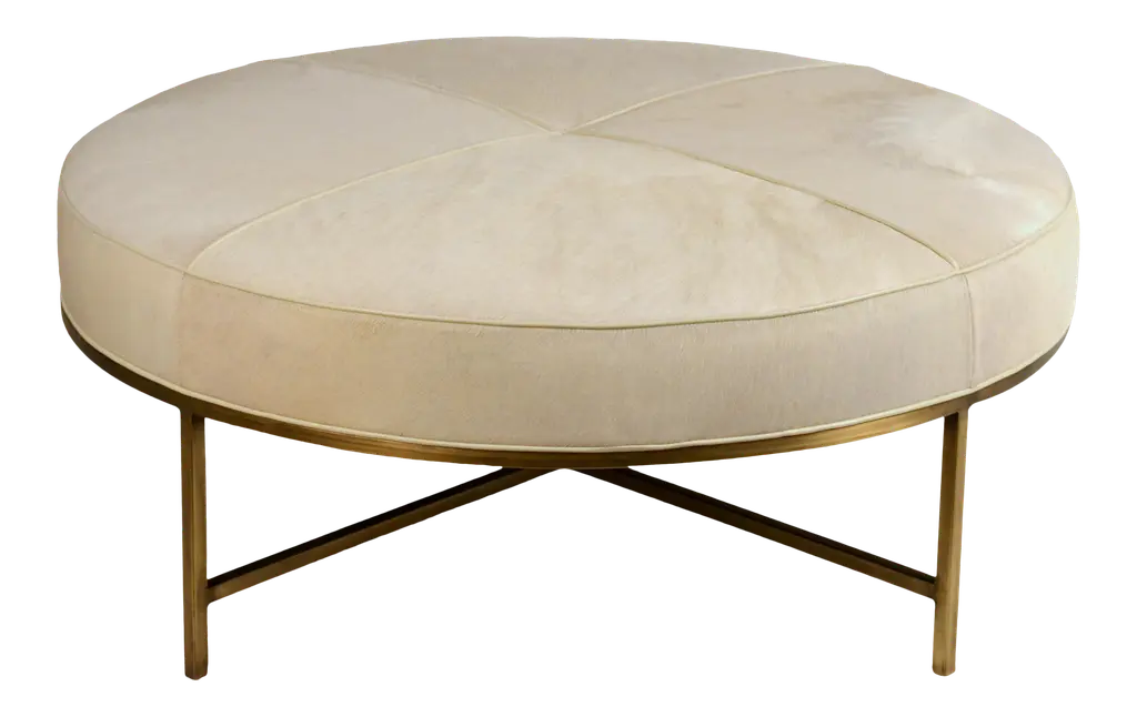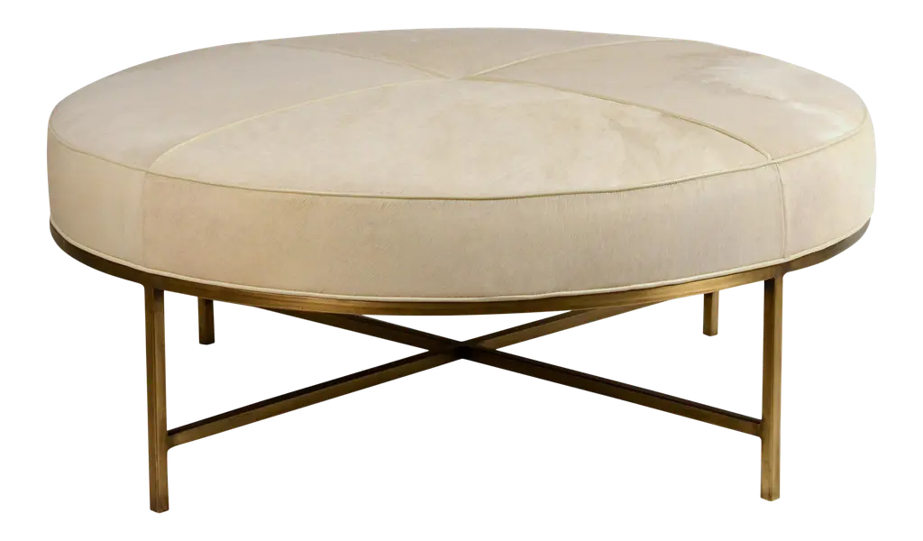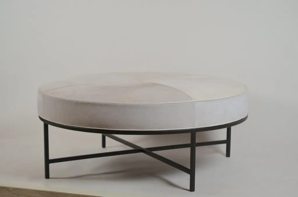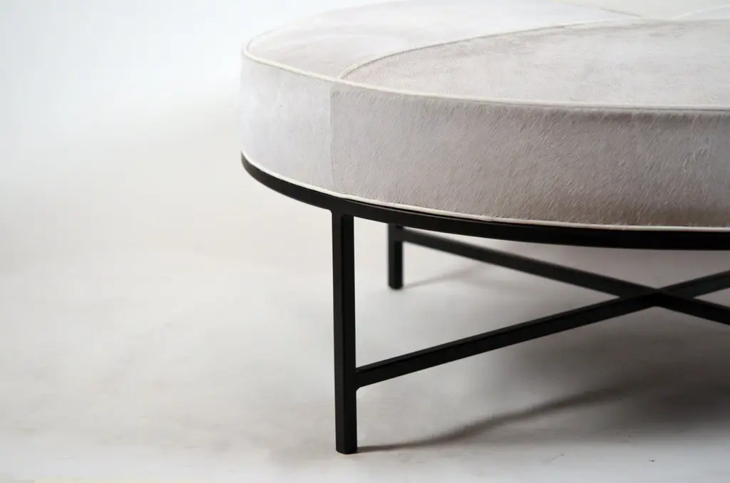White Hide And Matte Black 'Tambour' Round Ottoman By Design Frères