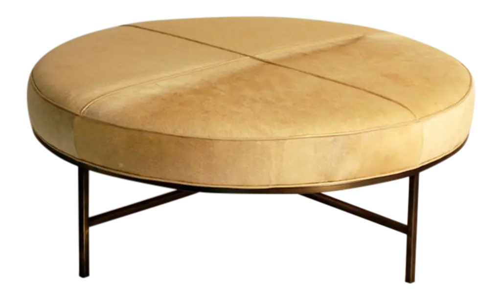 White Hide And Matte Black 'Tambour' Round Ottoman By Design Frères