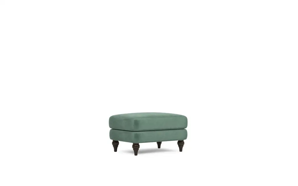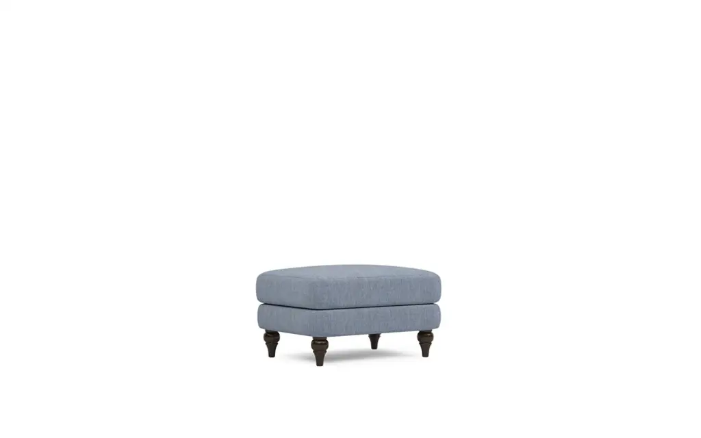 A Kathy Kuo Home exclusive, our Willett ottoman combines turned wood legs with a gently rounded silhouette for a classic, charming look. We designed Willett with a custom cushion fill—hypoallergenic Trillium® fiber holds its shape and offers all the comfort of down without the fluffing maintenance. This ottoman looks good anywhere, whether paired with our Willett chair, loveseat, or sofa, or styled as a set of two in your living room or at the foot of your bed.