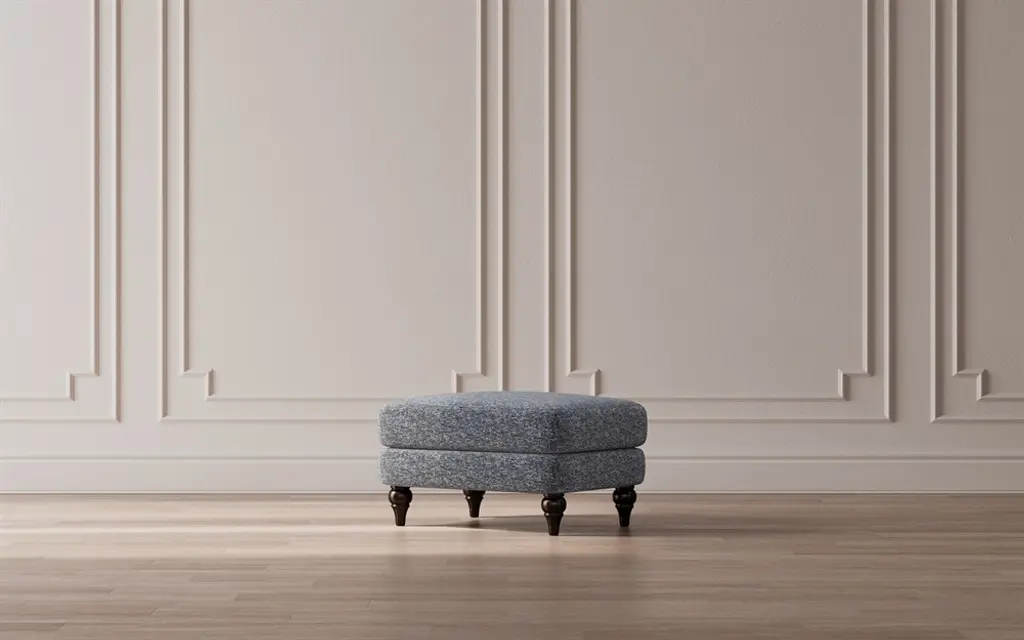 A Kathy Kuo Home exclusive, our Willett ottoman combines turned wood legs with a gently rounded silhouette for a classic, charming look. We designed Willett with a custom cushion fill—hypoallergenic Trillium® fiber holds its shape and offers all the comfort of down without the fluffing maintenance. This ottoman looks good anywhere, whether paired with our Willett chair, loveseat, or sofa, or styled as a set of two in your living room or at the foot of your bed.