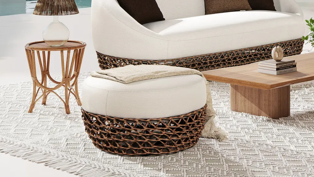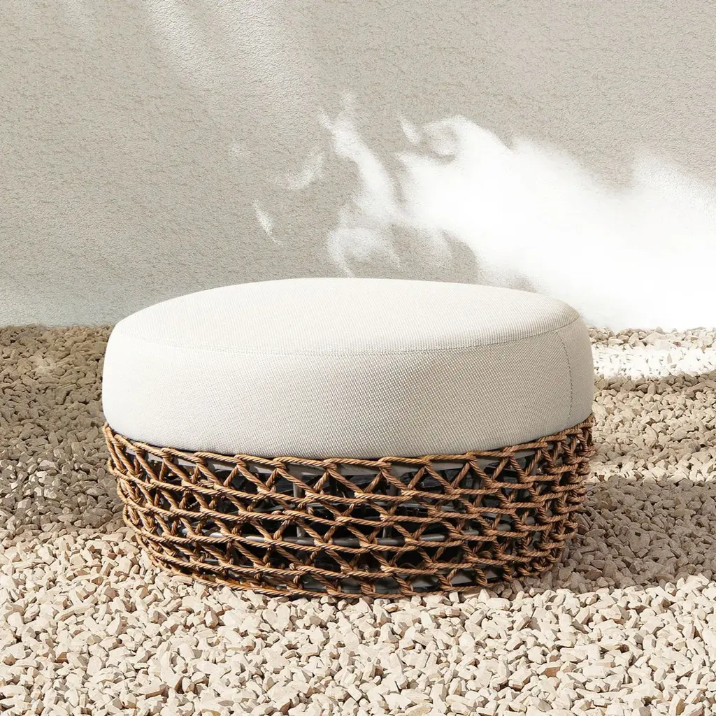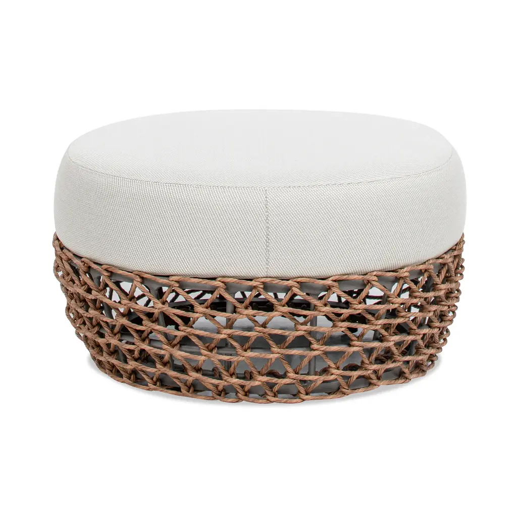 Willow Round Wicker & Upholstered Patio Ottoman - Natural