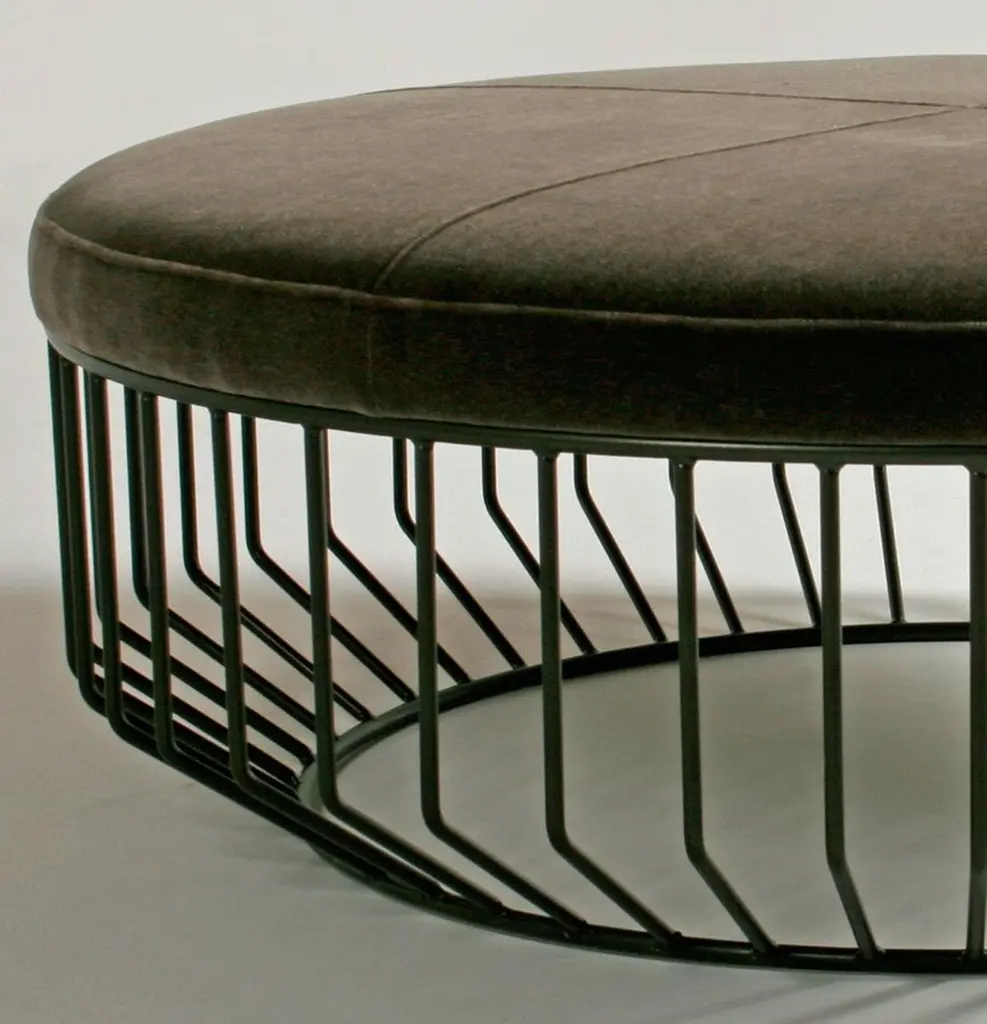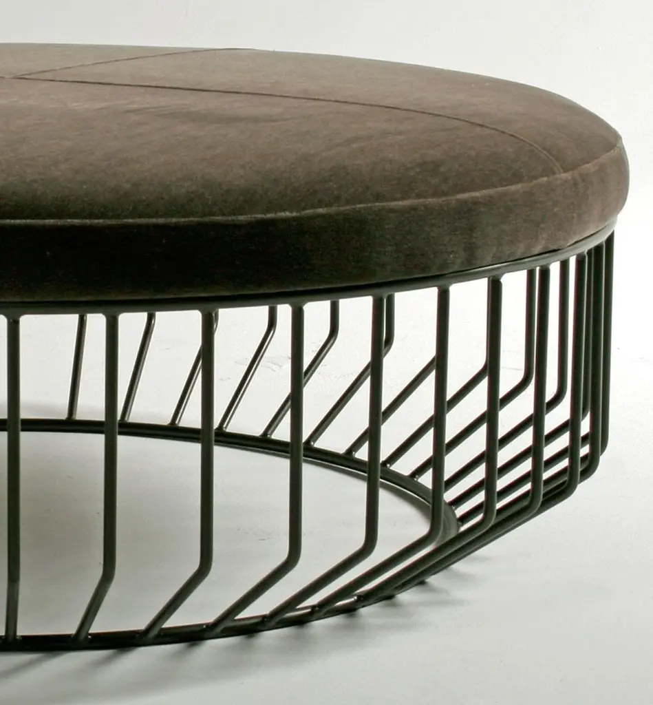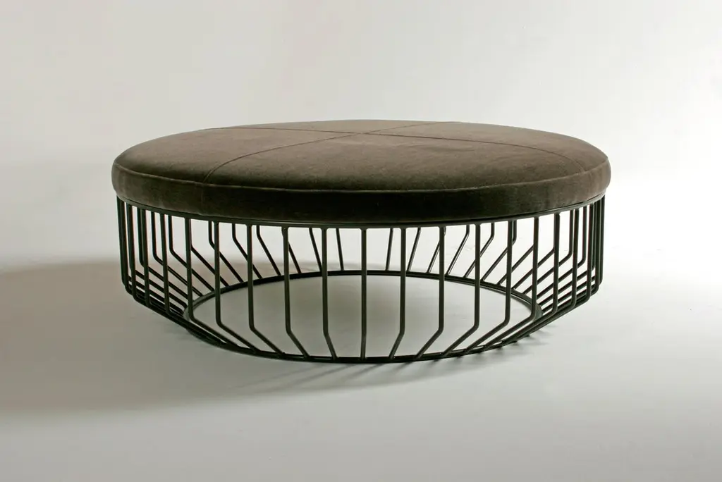 Wired Large Ottoman by Phase DesignDimensions: Ø 106.7 x H 35.6 cm. Materials: Powder-coated metal and upholstery.Solid steel bar with upholstered tops. Steel available in gloss or flat black and white, polished chrome, burnt copper, or smoked brass finish. Upholstery may be sourced in Customer Own Material (COM), Customer Own Leather (COL), or in Phase Design's suggested fabrics and leathers. Prices may vary. Please contact us.Blending sloping angles and taut lengths of bent metal are a modern interpretation of the wiry idea initially conceived by Warren Platner. The series is made up of a suite of tables, side tables and benches and fitted with luxurious solid wood or upholstered tops.Autodidact award-winning designer Reza Feiz has always been drawn to the strength in simplicity. Lured to Southern California by its inventive, creative spirit, he quickly discovered his true calling among the vast community of creators and artisans whose skills and ingenuity expertly transform imagination into reality.Inspired by Los Angeles’ iconic landscape and the compelling beauty of the places and spaces he encountered, he envisioned furniture, lighting and tabletop accessories, fabricating them from contemporary materials with the help of a tightly knit coterie of craftspeople.The resulting restrained yet revolutionary pieces have garnered enthusiasm from an international audience.He’s been lauded as “An American designer who influences world design”, a “Style Pioneer” and “One of a group of select young designers who represent the leading edge of discovery in design.” Architectural Digest’s Mayer Rus noted that his “wide-ranging collections make a strong case for the enduring appeal of restrained modern design.” Surface Magazine raved that he “imbues his work with a 21st-century edge. His astute sense of restraint keeps the designs relevant in a constantly evolving industry, without needing to subscribe to trends.”“Reza Feiz imbues his work with a 21st-century edge. His astute sense of restraint keeps the designs relevant in a constantly evolving industry, without needing to subscribe to trends.”