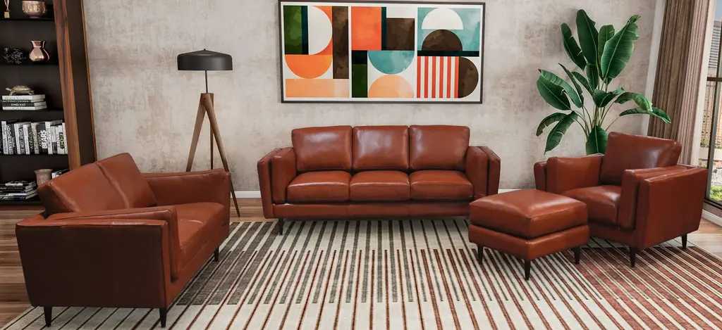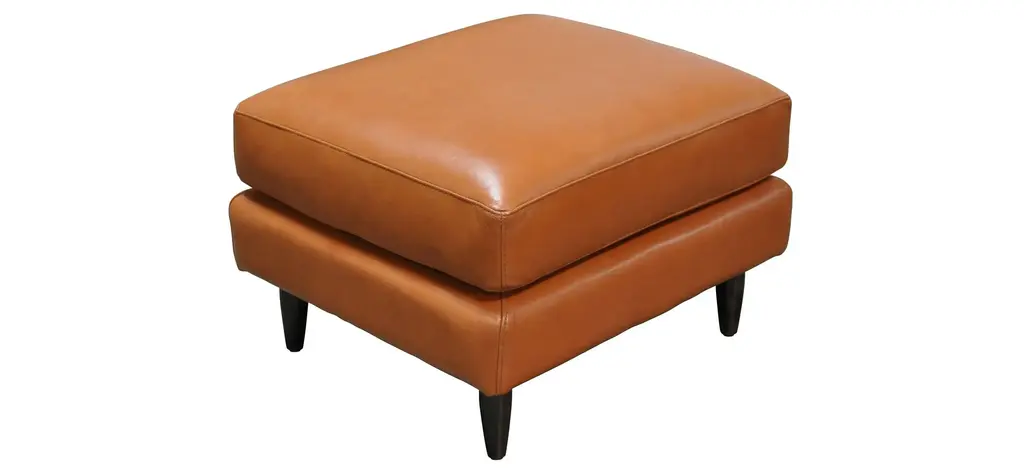 The Zander Ottoman is proudly made in the USA from 100% top grain leather and is built to last with its Limited Lifetime Frame & Spring warranty. It begins with clean mid-century modern styling featuring a lean angled track arm lined with an inside arm cushion to provide comfort and a beautiful design detail. A tall turned leg gives the Zander a light and airy appearance. It's then upholstered in a soft and subtly two-toned Aniline Plus top grain leather which retains the natural beauty and feel of the leather hide while providing superior protection against everyday use. Fully padded side & back panels provide additional structure and quality to an excellently designed product.