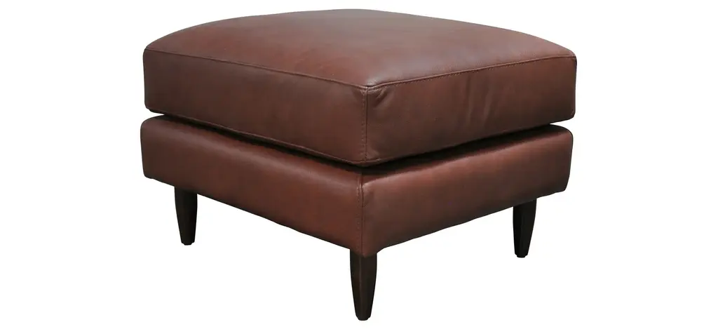 The Zander Ottoman is proudly made in the USA from 100% top grain leather and is built to last with its Limited Lifetime Frame & Spring warranty. It begins with clean mid-century modern styling featuring a lean angled track arm lined with an inside arm cushion to provide comfort and a beautiful design detail. A tall turned leg gives the Zander a light and airy appearance. It's then upholstered in a soft and subtly two-toned Aniline Plus top grain leather which retains the natural beauty and feel of the leather hide while providing superior protection against everyday use. Fully padded side & back panels provide additional structure and quality to an excellently designed product.