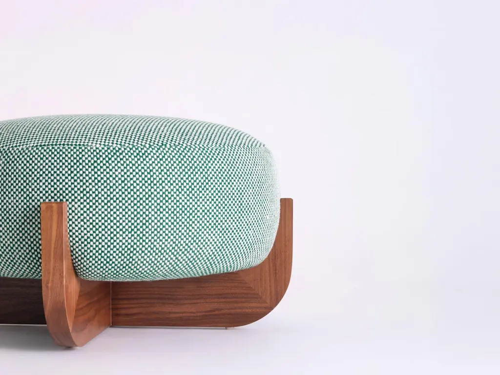 The Ziba Ottoman welcomes you with open arms—sculptural, warm, and familiar. A softly rounded, upholstered cushion nestles gracefully within a solid wood cross-frame. The clean symmetry between the cushioned top and wooden base creates an ottoman that’s as inviting to use as it is to admire.Listed price is for the Ziba Ottoman- in Solid Walnut, White Oak, or Ebonized Oak, and Sisu by Kvadrat fabric. COM is also available, with a List price of $ 3,390.00.Prices exclude packing.Solid wooden base available in walnut, white oak, ebonized oak. Upholstery may be sourced COM, COL, or suggested fabrics and leather. (COM requirements = 2.5 yards).Ziba Ottoman is offered as a standalone item, or along with the matching Ziba Lounge Chair.