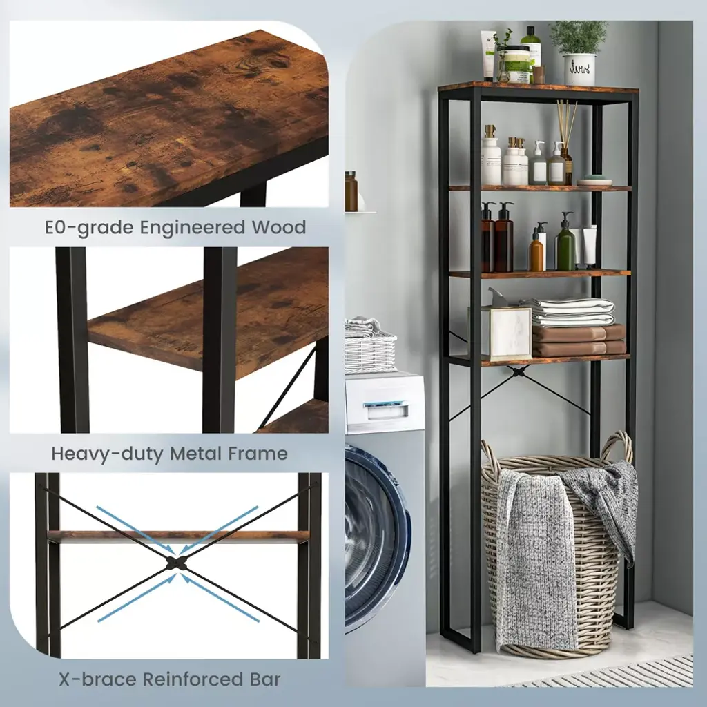 Costway 4-tier Over The Toilet Storage Rack Freestanding Bathroom Organizer Rustic Brown