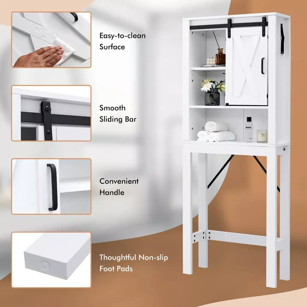 Costway Over The Toilet Bathroom Storage Cabinet With Sliding Barn Door & Adjustable Shelf