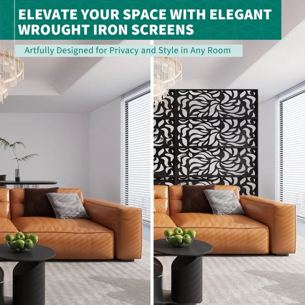 Product Description:Upgrade your outdoor space with these elegant 70.9"H metal fence panels featuring laser-cut scrollwork designs that combine privacy with decorative appeal. Made from 2mm powder-coated aluminum, they withstand extreme temperatures (-20°F to 120°F) and 55mph winds. Freestanding design installs in 10 minutes without tools.Key Features:✔ Weatherproof Aluminum – Triple-layer rust-resistant coating✔ Instant Privacy – Blocks views while allowing airflow✔ Multi-Functional – Hang lights, train climbing plants, or frame hot tubs✔ Quick Setup – No-tool assembly with anti-rattle locking pins✔ Safe Design – Rounded edges, no sharp corners